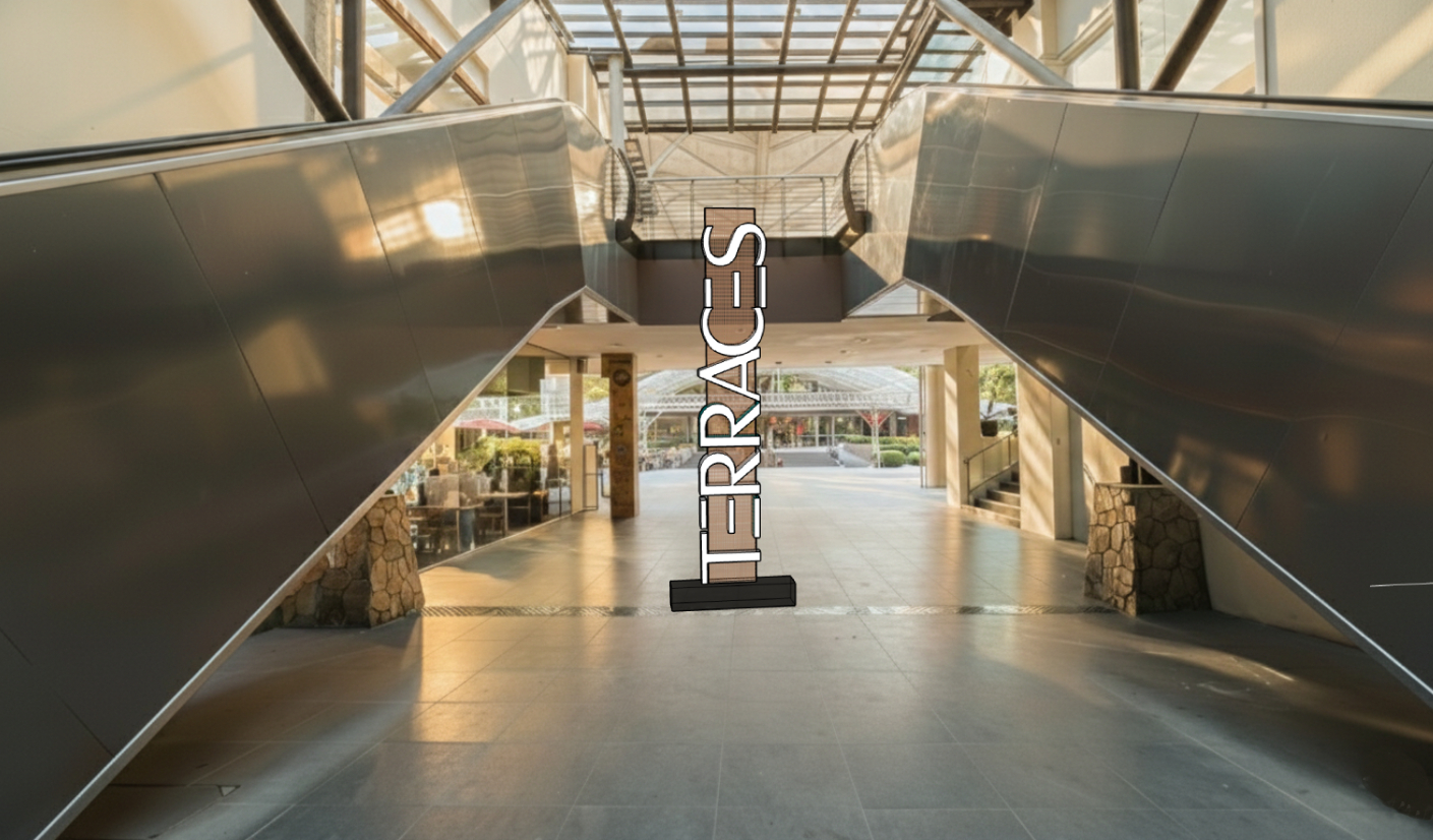can you make the signage look real perforated mesh bronze metallic and the letters textured white