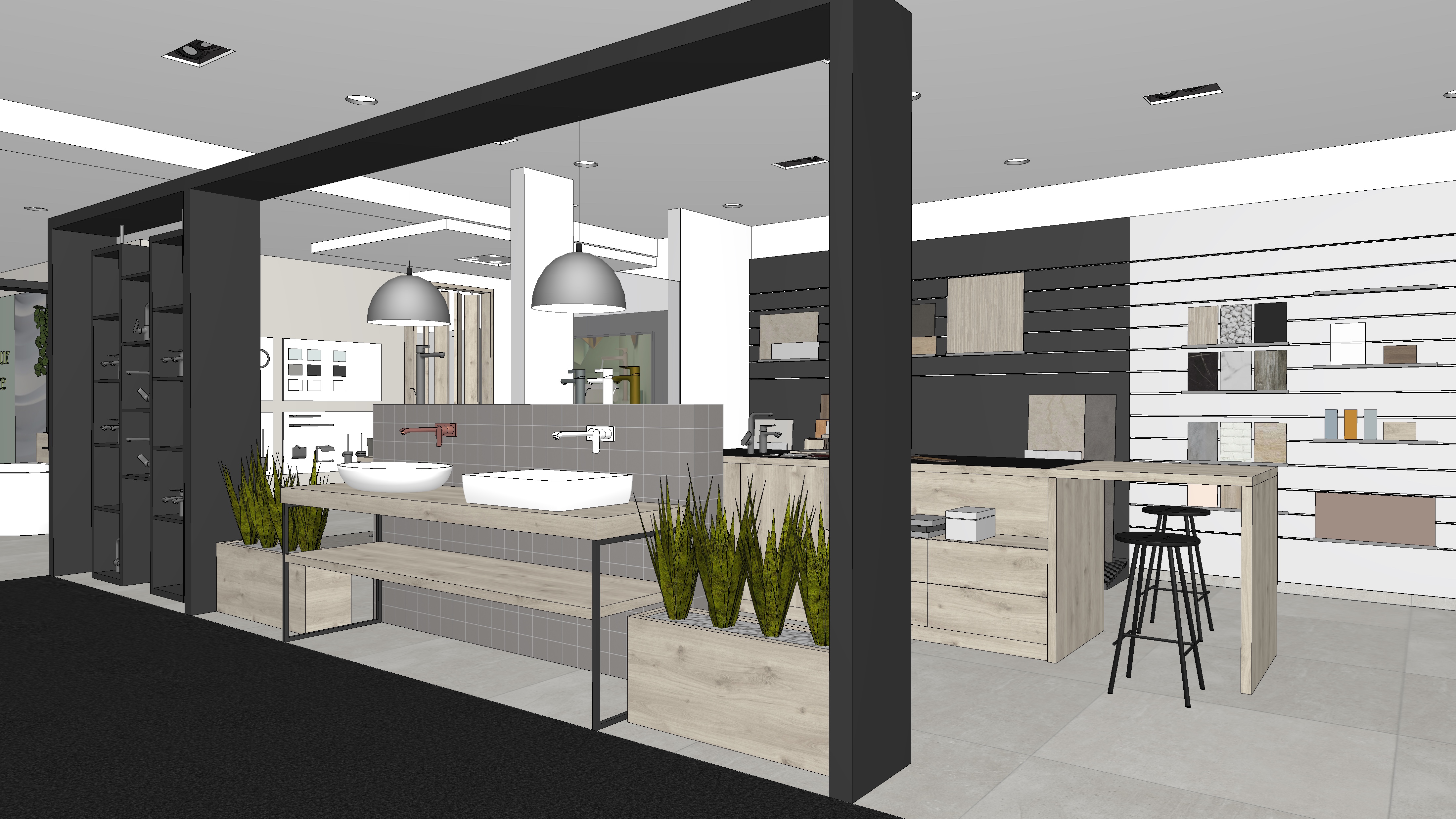 use the provided cad perspective strictly as the sole geometric and compositional reference preserve all elements exactly as given including proportions layout camera position field of view and object placement do not add remove reinterpret or redesign any architectural or interior elements no new objects furniture or light sources may be introduced under any circumstances all visible text within the image must be preserved exactly as shown do not alter reinterpret stylize translate or replace any text typography spelling layout and positioning must remain 100 identical to the original enhance the image exclusively through photorealistic rendering quality apply realistic materiality to all surfaces based on their implied function and construction maintaining the original design intent surfaces should exhibit subtle physical properties such as texture depth light absorption soft reflections and where appropriate controlled specular highlights or mirror effects avoid exaggerated or stylized materials aim for believable natural realism lighting introduce natural daylight entering the space in a plausible and context appropriate way the daylight should appear realistic and balanced without being limited to overcast conditions detect and utilize all light fixtures that are present in the original cad image these must visibly emit light and contribute to the overall illumination of the scene artificial lighting should produce realistic light falloff gentle highlights and nuanced shadow transitions do not add or invent any additional light sources beyond those already visible in the image the final image should read as a faithful photorealistic translation of the original cad perspective not as a reinterpretation