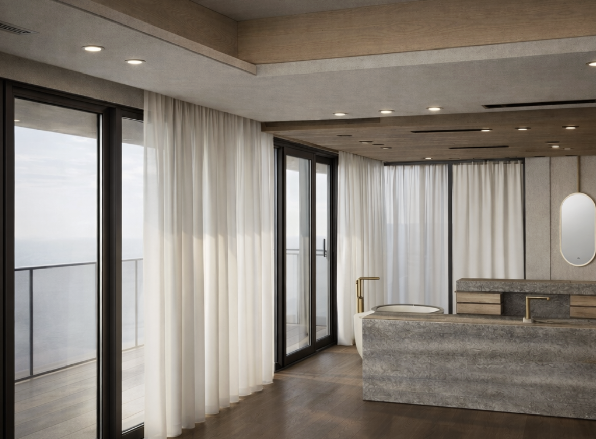 update transition to bathroom area with bronze inlay flushed divide tadelakt plaster walls and floors in bathroom