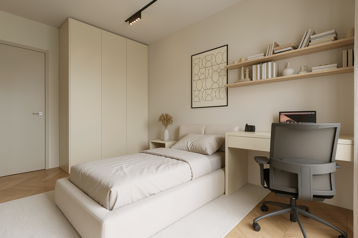 make it realistic photo and change bedsheets to modern bedsheets
