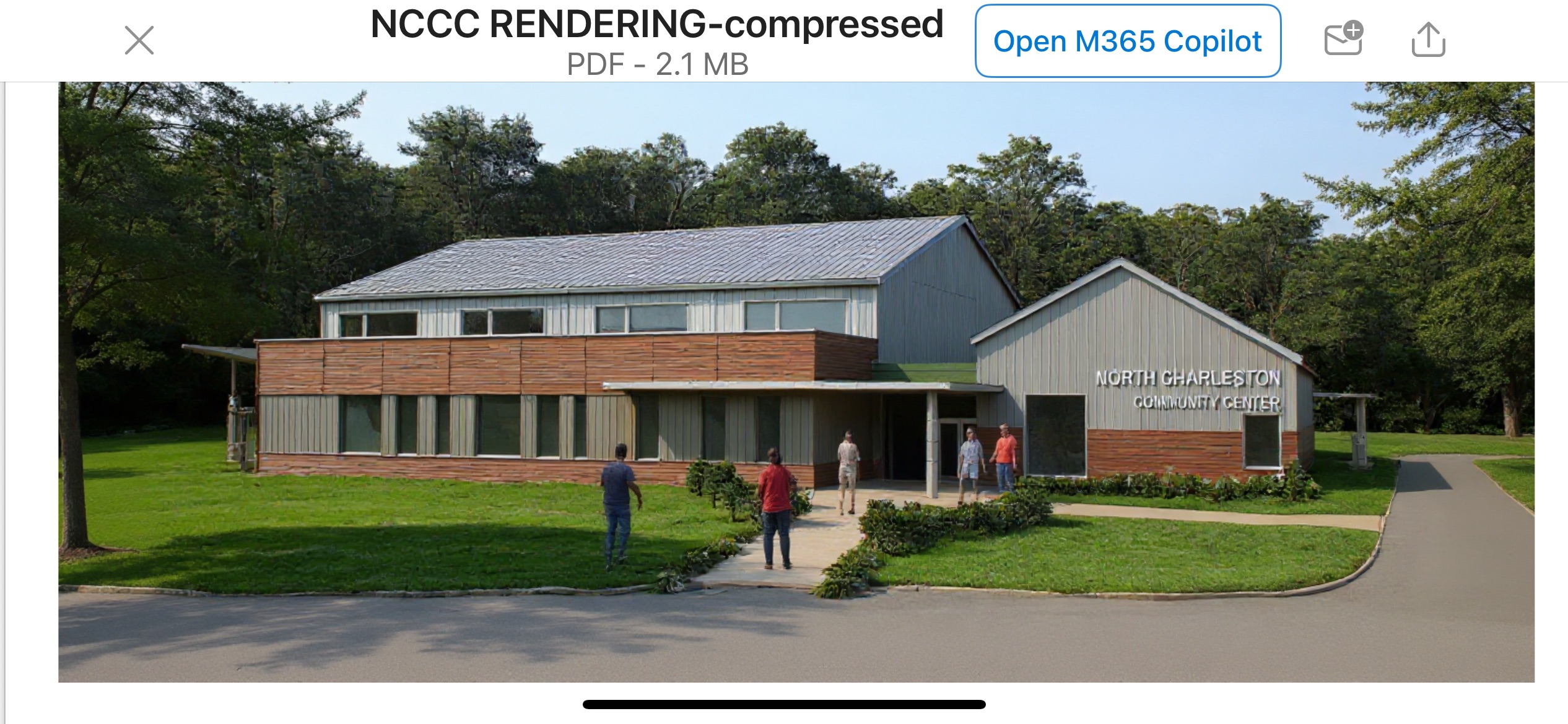 the materials on the building are smooth brick and charcoal gray metal siding with vertical panel lines