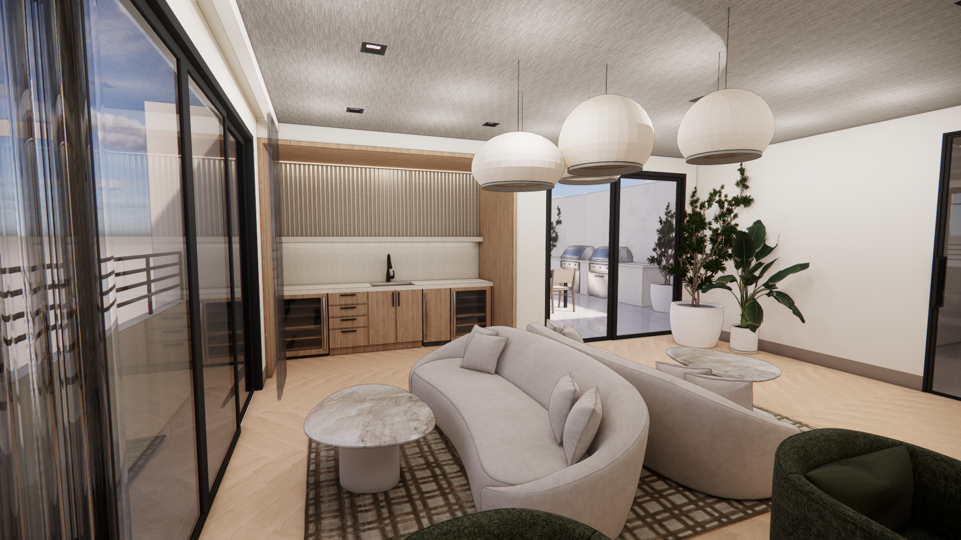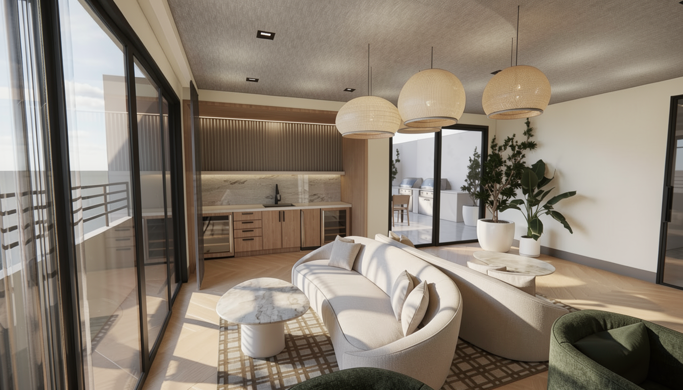 use the uploaded render as the exact base image maintain the original camera angle lens length perspective framing composition and spatial proportions exactly as shown do not alter architectural elements wall locations ceiling details millwork flooring layout window placement or built ins preserve all existing materials finishes textures paint colors tile stone wood tones and lighting design exactly as they appear maintain the same daylight direction shadow quality exposure and overall color temperature keep all furniture decor styling and layout exactly the same unless explicitly instructed otherwise do not reinterpret the design restyle the space modernize it or adjust proportions only modify the specific items that will be listed in the next prompt the goal is to enhance realism and material fidelity while preserving the original design intent 1 1 output should be ultra photorealistic with natural material depth accurate reflections realistic fabric texture subtle imperfections and true to life lighting update the rug to be a neutral blue gray color update the green chairs that are partially in the image to a grey color