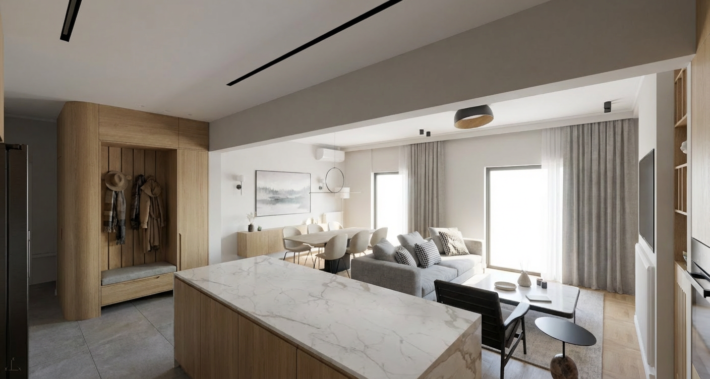 modern rustic kitchen with farm sink and under cabinet lighting add chairs to the island