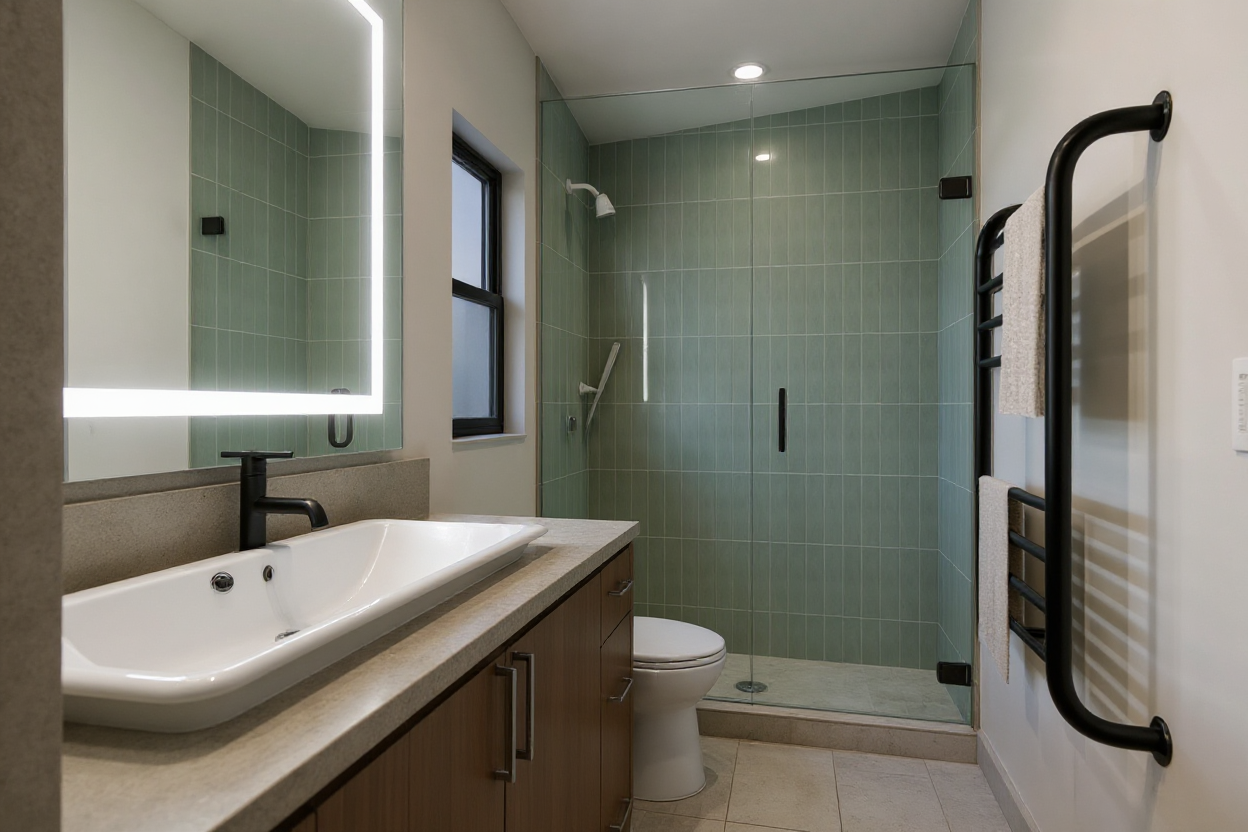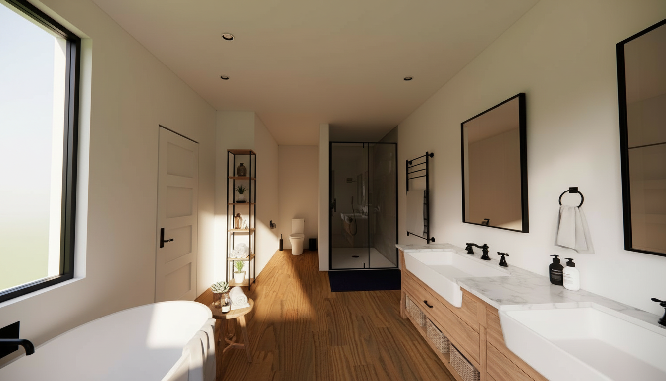mountain modern ski home in the evergreen forest snow and mountain views suv in the driveway sunset dark wood siding and stacked stone chimney