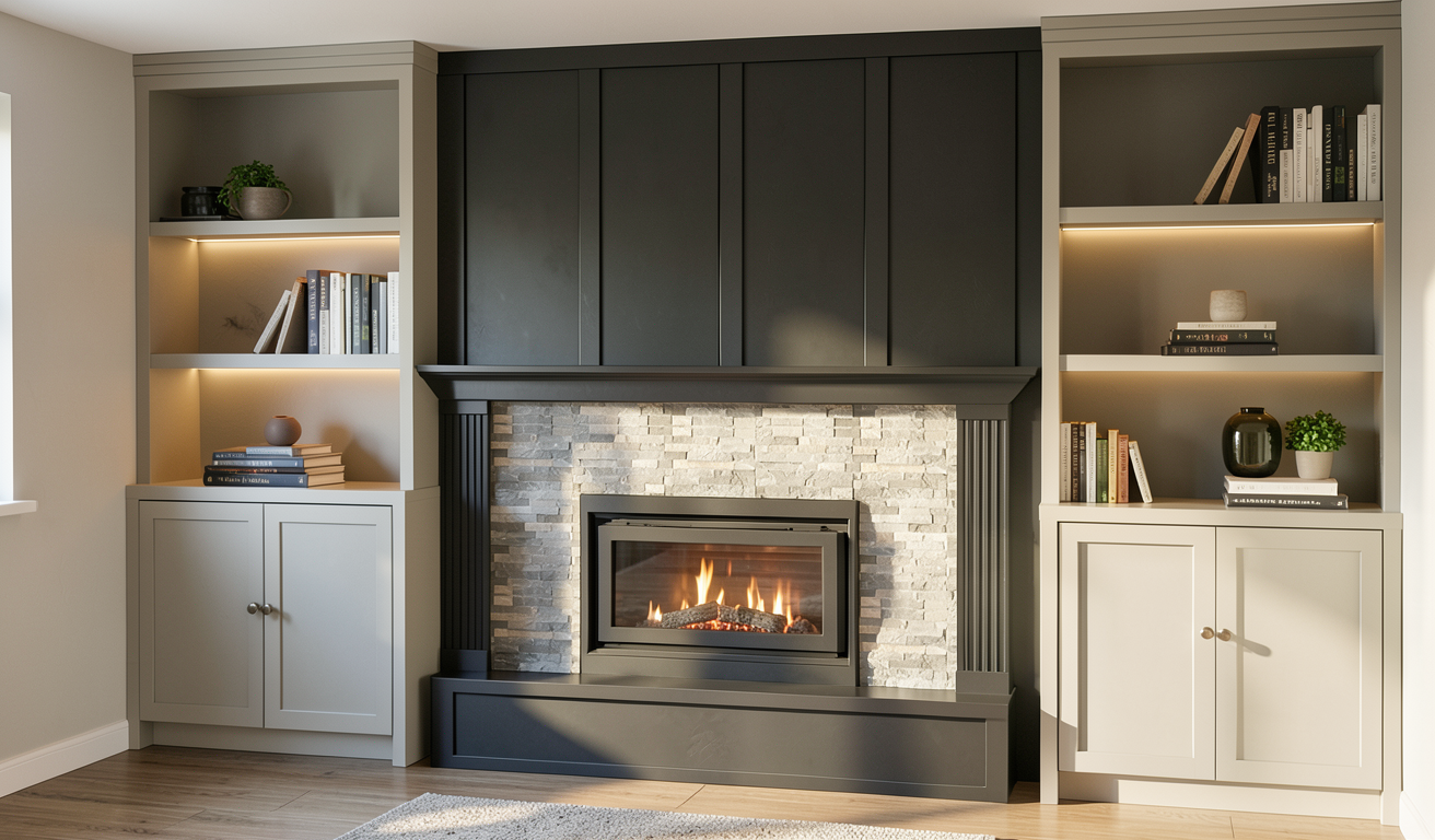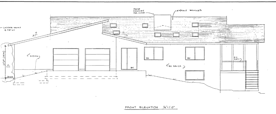 convert this floor plan into a realistic isometric 3d view of a full house show the space from an elevated angle with furniture walls and details visible the roof is black the walls are hardiboard panels in sherwin williams navy the front door and the garage doors are sherwin williams iron ore the soffits and porch ceilings are tongue and groove in medium brown use the same furniture as shows on the plan do not change the orientation of the floorplan