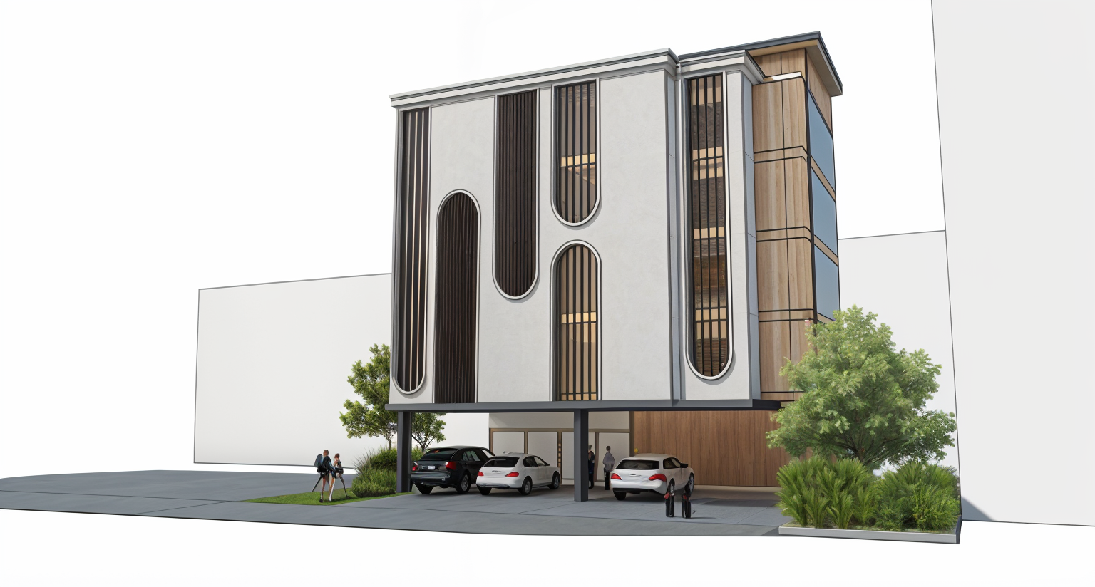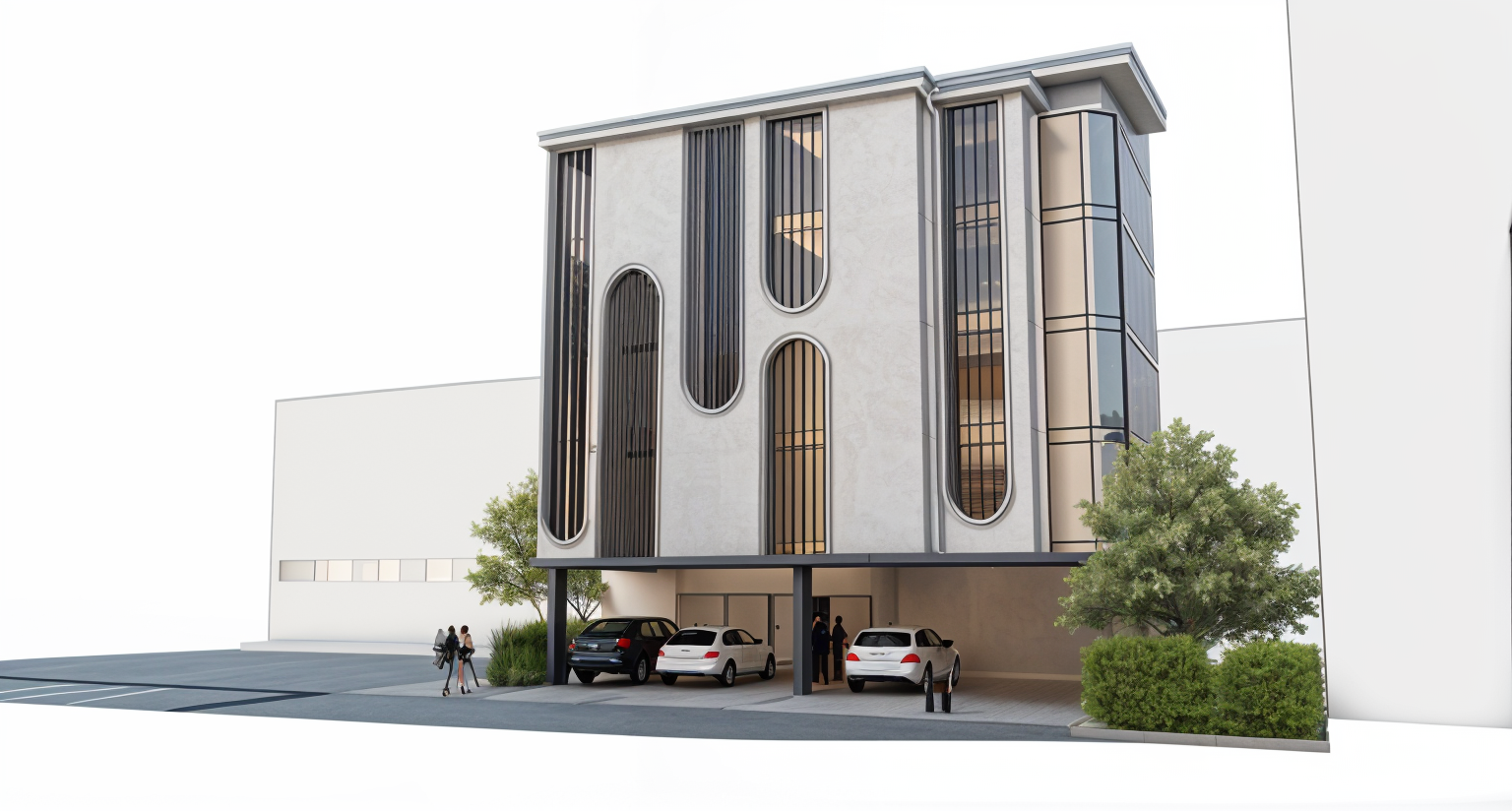 interior shot modern bathroom design with a minimalist and elegant atmosphere the walls are clad in light grey marble with subtle veining the floor is a dark slate grey enhancing the modern aesthetic a sleek black framed glass shower partition divides the space a round black mirror hangs above a white ceramic sink with a black faucet the closet area features shelves with neatly arranged grey storage boxes and neutral colored clothes lighting is soft and ambient creating a serene and sophisticated atmosphere