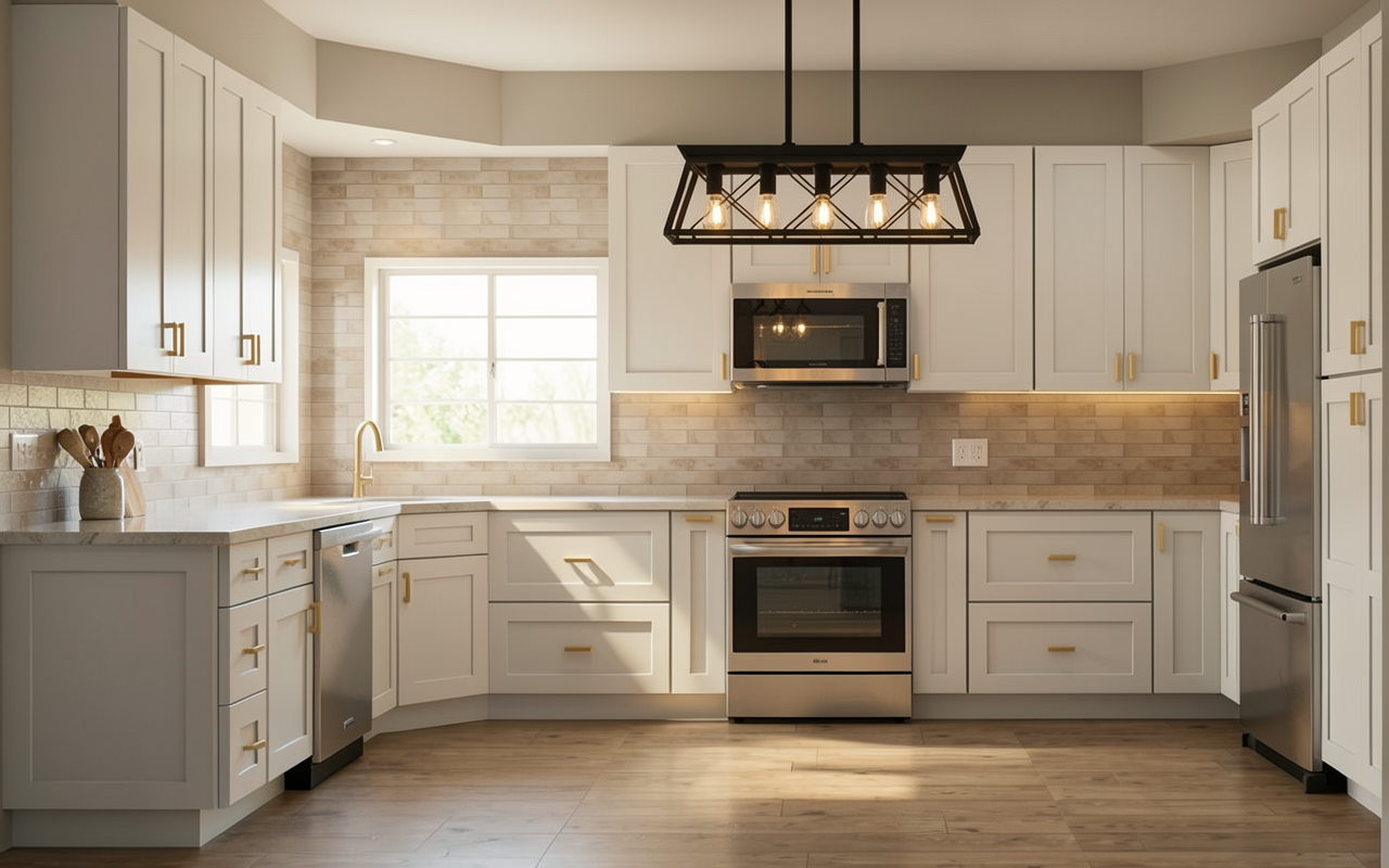 a manicured lawn layered flower beds low maintenance shrubs native plants stone pathway leading to the entrance with landscape lighting