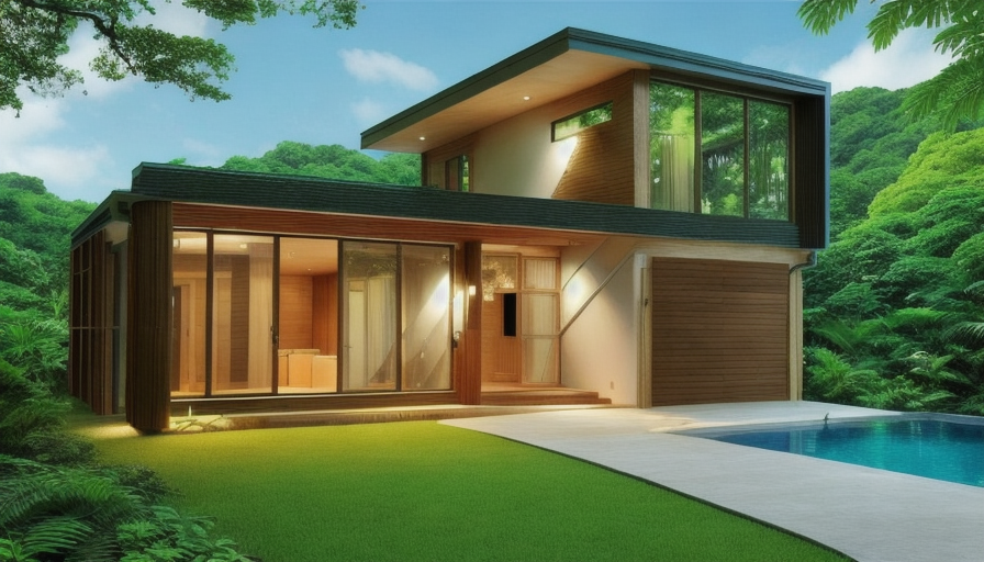 modernist exterior shot make this rendering look more realistic but keep the same color and material architecture