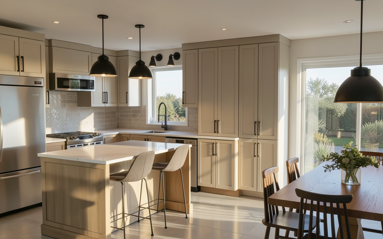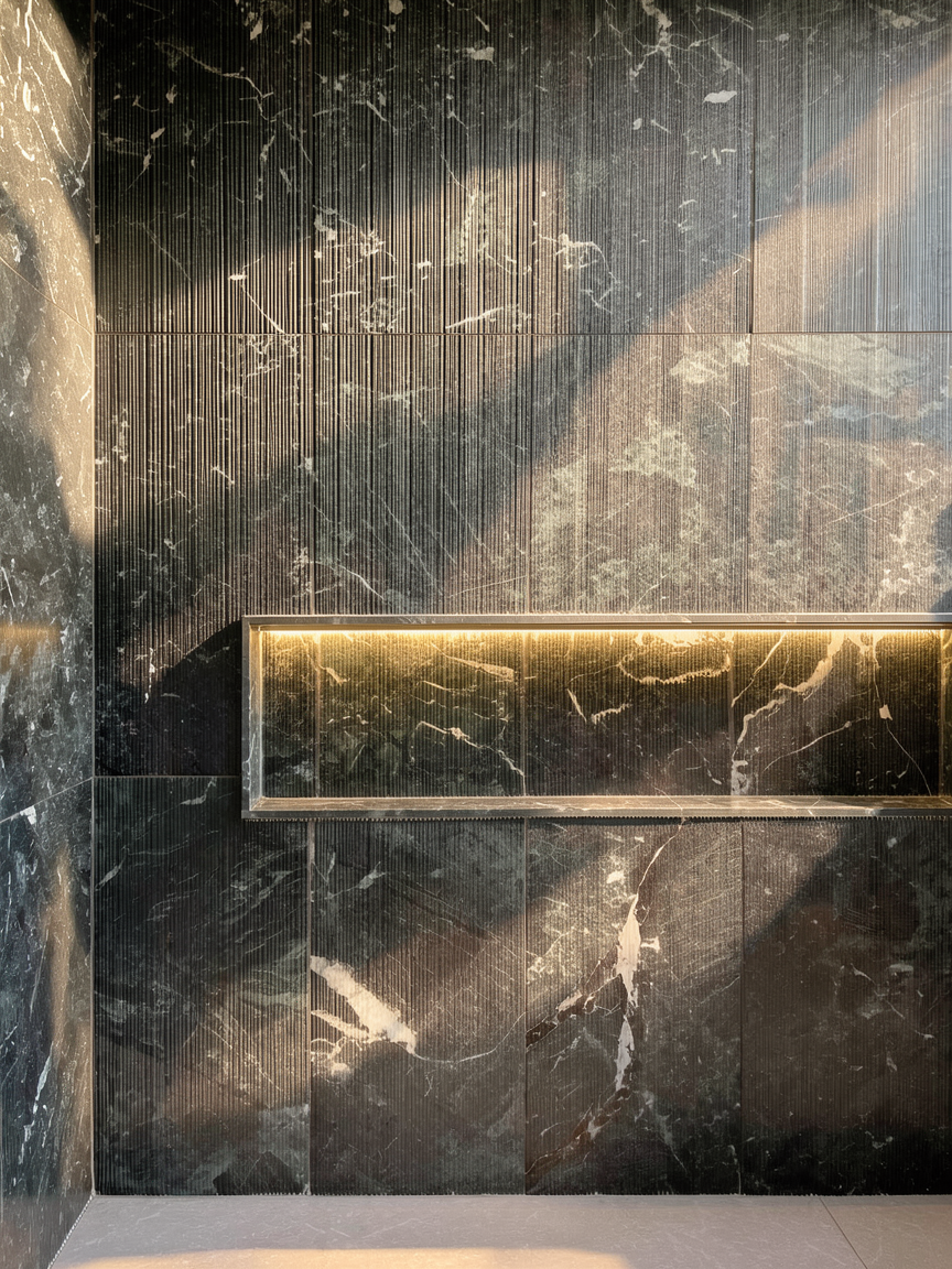 keep absolutely everything in this image exactly the same the velux skylights white ceiling light grey carpet dressed bed with white bedding dark navy tufted headboard geometric abstract wallpaper on the vertical wall tv wall unit dresser cabinet room layout and all proportions do not change anything add only this one thing place a medium sized burnt orange rust copper deep pile shaggy rug under the bed positioned sitting under the lower half of the bed and extending out in front of it onto the grey carpet the rug colour should match the burnt orange copper rust tones already visible in the geometric wallpaper on the wall the rug should be plush warm toned proportionate in size to the bed not too large not too small photorealistic luxury interior