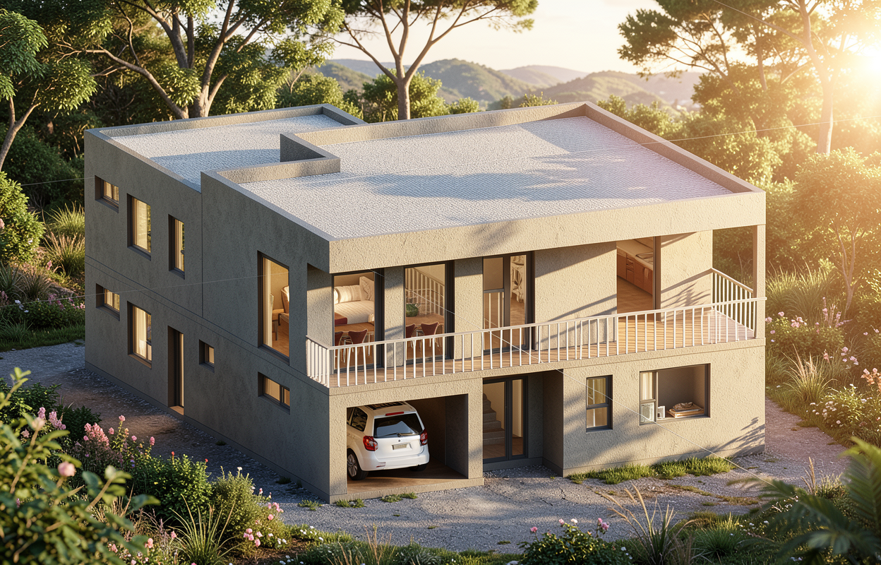 use minimal trees just grass around the house use asphalt in front of the house and remove all trees and use pavements around the house