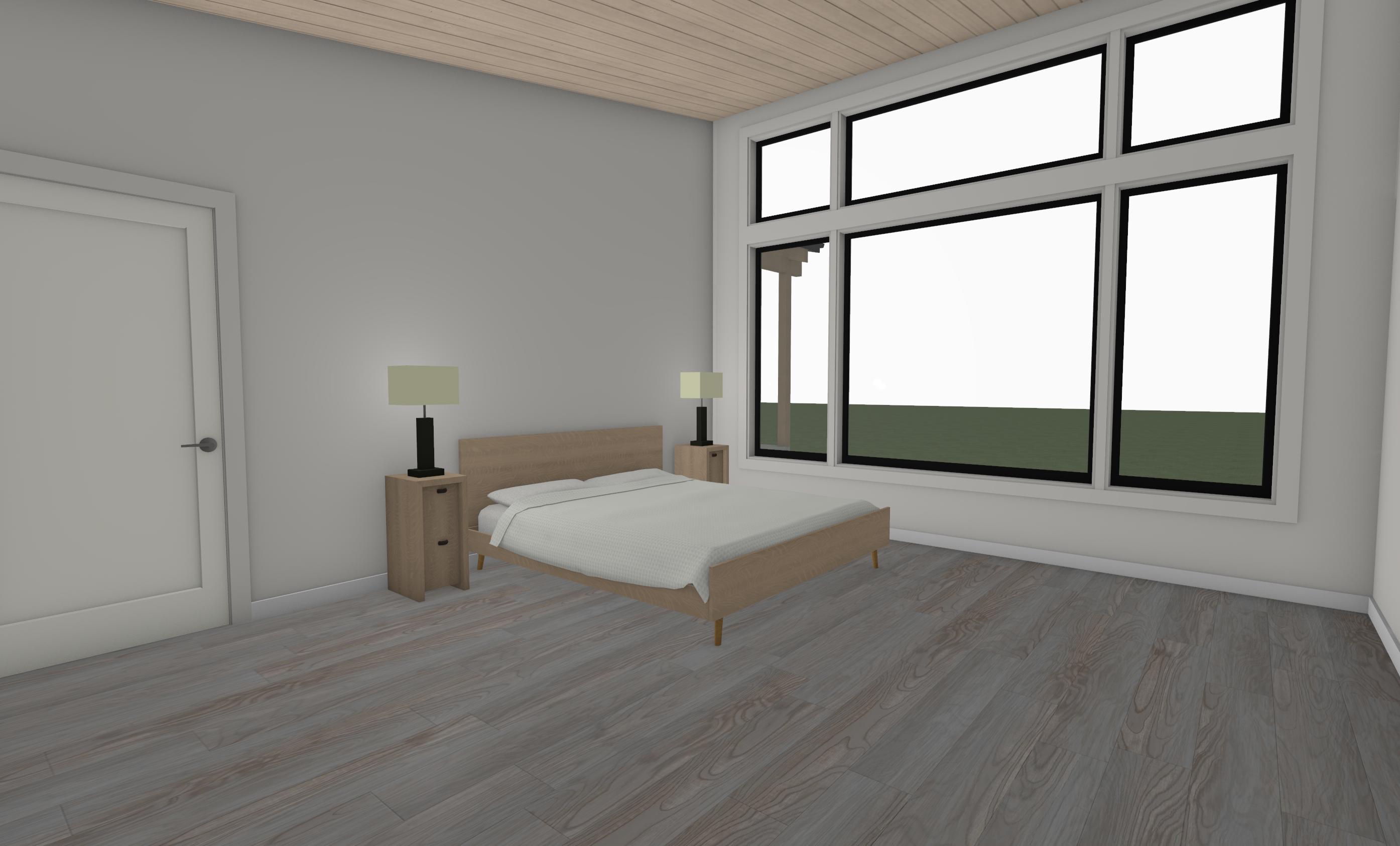 make realistic make ceiling clear white oak add curtains open make furniture modern show couple in there 50 s laying down one reading one watching tv