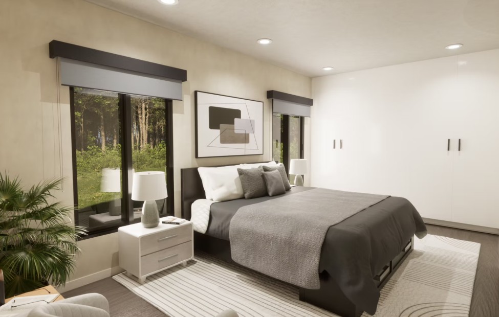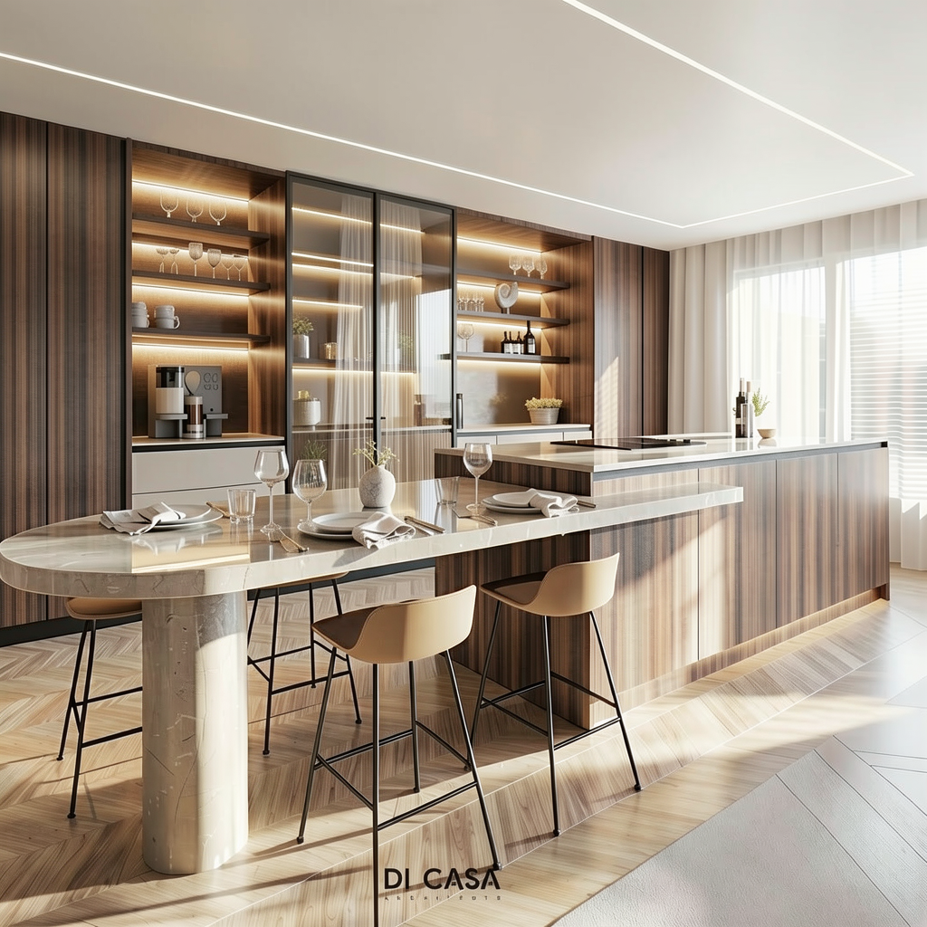 update this render to look more photo realistic and update the material palette to look more warm and inviting