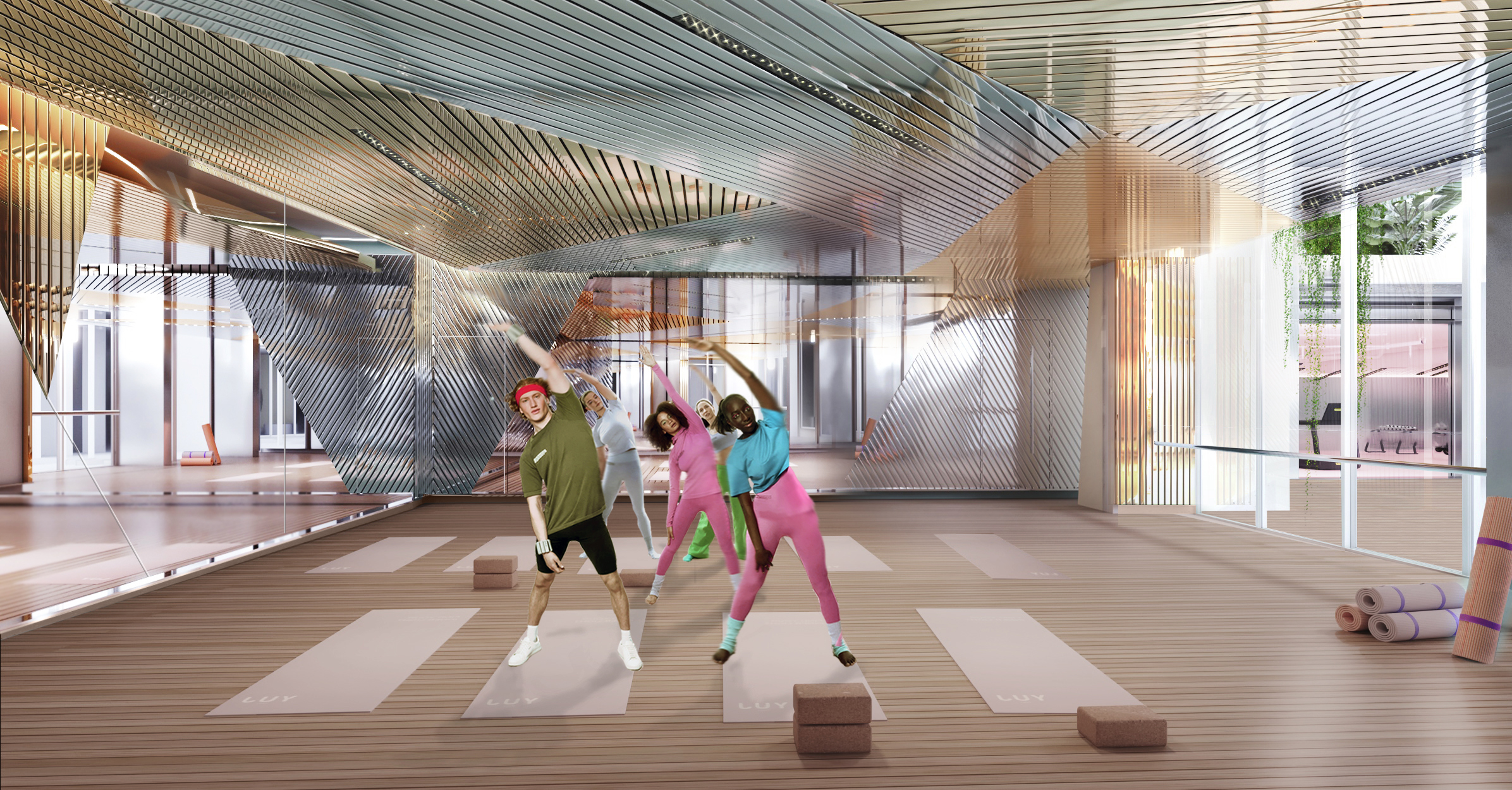il faut garder le m me aspect d image int rieure il n y a plus de plafond en lames miroirs dor es et argent es ces des grandes toiles tendus miroirs les murs deviennent totalement en miroir avec de grands calepinages droits cadr s