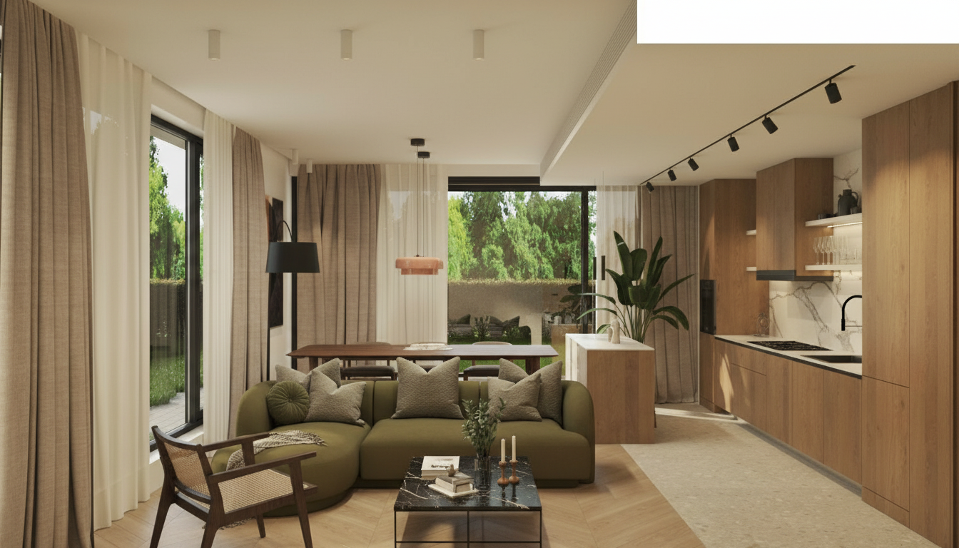 modern ob vac pokoj s n bytkem novou d ev nou podlahou a nov m n st nn m osv tlen m zanech stejn dispozice m stnosti um st n okna a velikost jako na origin ln fotce