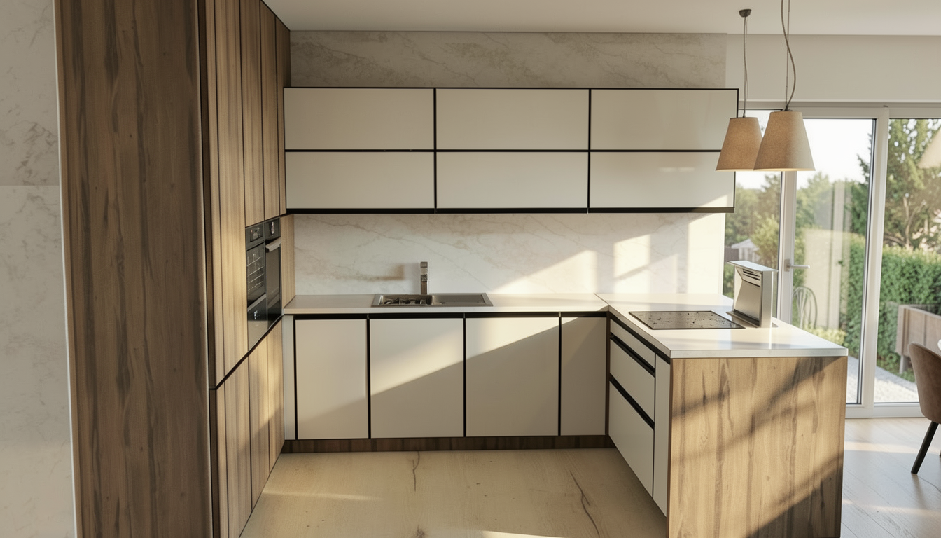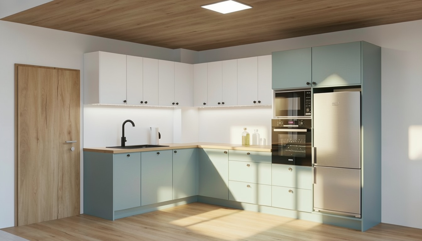 make a photo visualization keep the shape and size of the cabinets add some decorations