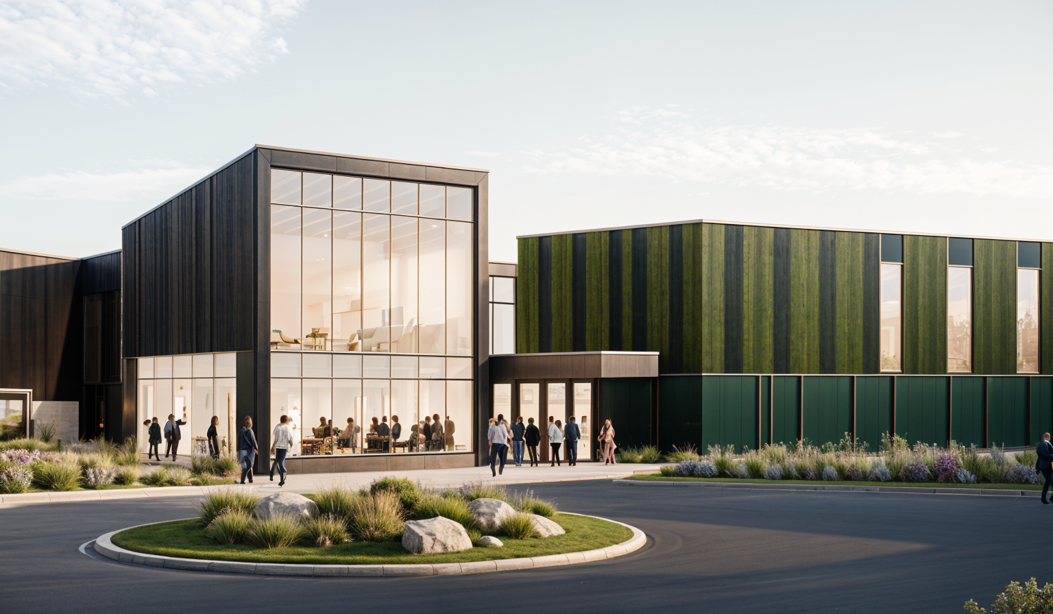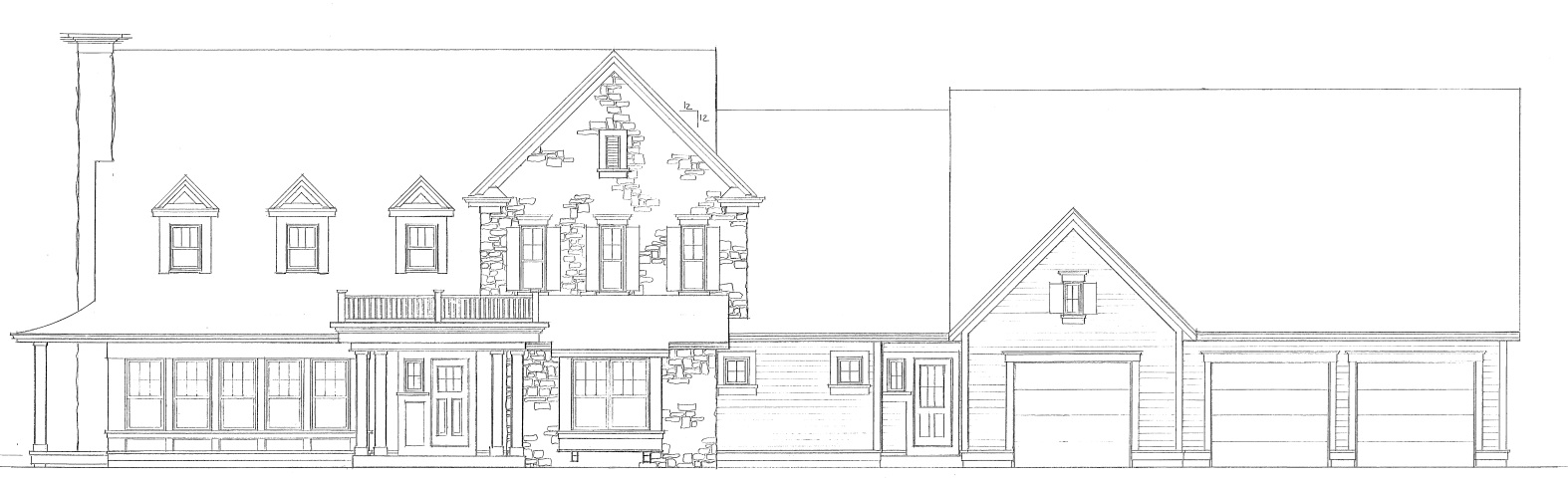 prairie style exterior shot farmhouse with stone in the middle front architecture