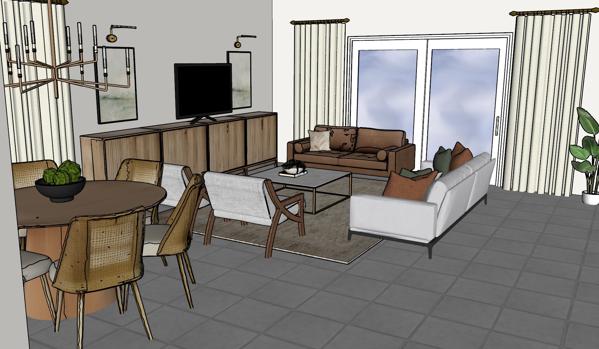 make the far couch by the window a caramel leather color then make the flooring a 12 x24 gray tile then lighten the wood of the entertainment center