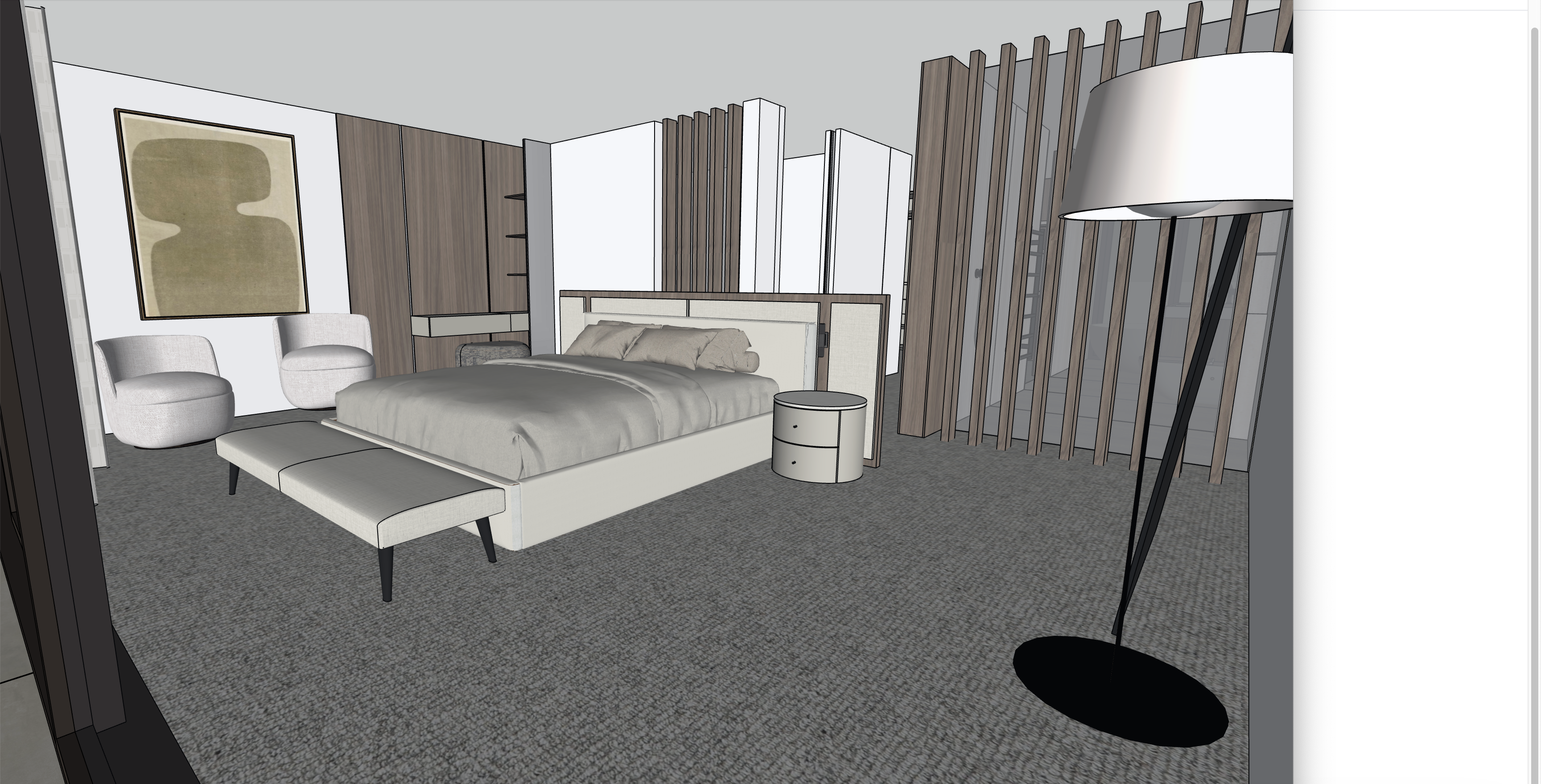 render a modern cozy luxury master bedroom with a sleek minimalist design use soft neutral tones for the walls such as light greys or beiges