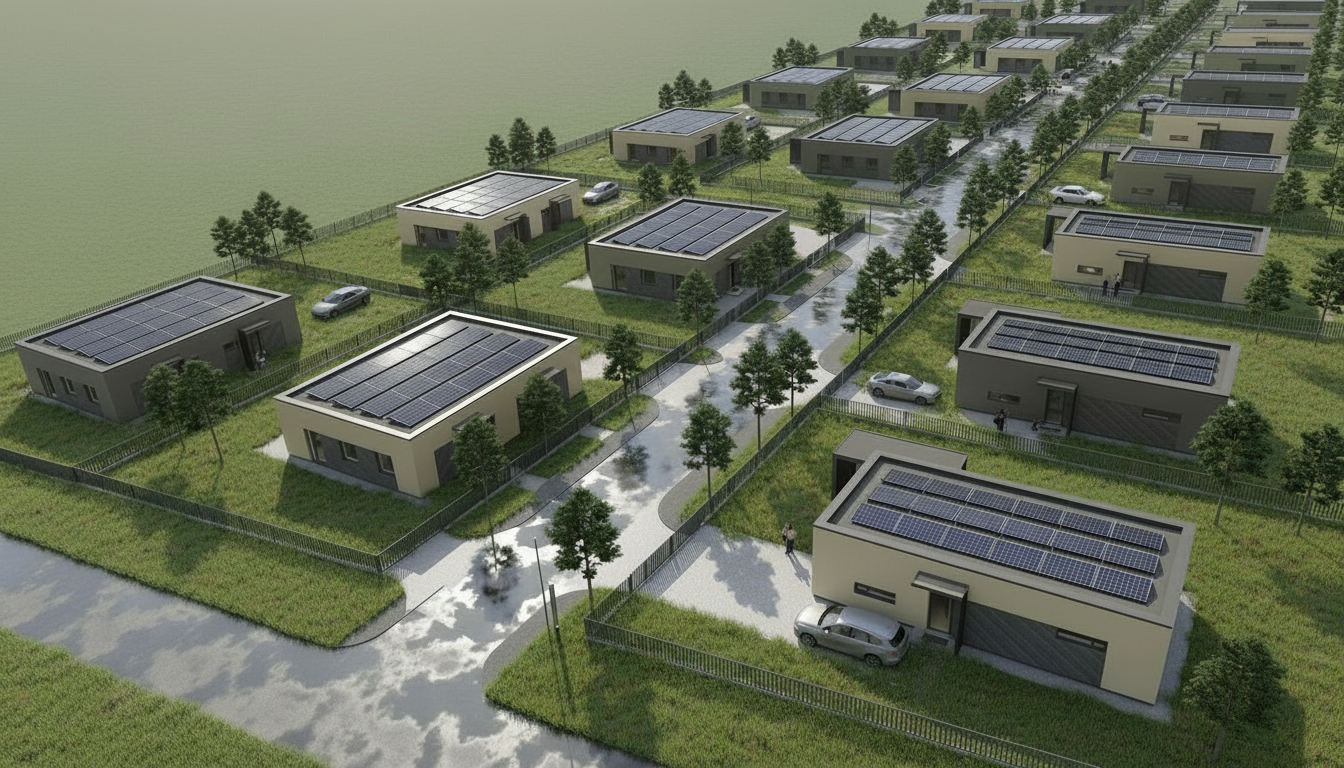 don t change details but make this setting more realistic with bright midday lighting add walking people on sidewalks
