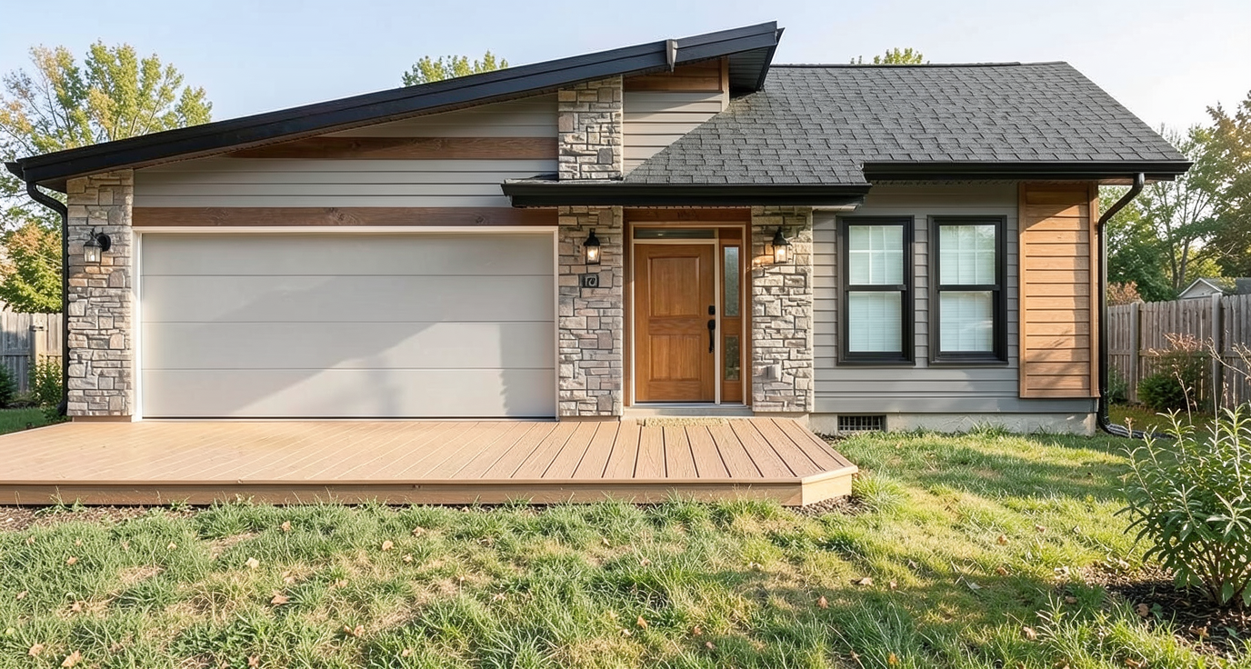1 stone creative mines craft masonry veneer split modular greypearl 2 main exterior james hardie horizontal lap siding select cedarmill aged pewter 3 accents woodtone rustic series james hardie lap siding roasted walnut 6 roof shingle certainteed landmark shingle moire black 7 smart trim window trim to match adjacent siding color corner boards to match adjacent siding color 2 smart trim on right elevation at woodtone to match the woodtone roasted walnut front drop beam to match woodtone roasted walnut fascia sherwin williams sw6258 tricorn black belly board james hardie aged pewter 8 garage door steel craft flush woodgrain walnut no windows 9 front door and door trim trimlite drs1k with sidelite and transom painted sherwin williams sw6258 tricorn black handle taymor london grip matte black 10 gutters downspouts and soffit gentek black 11 windows black outside and white inside