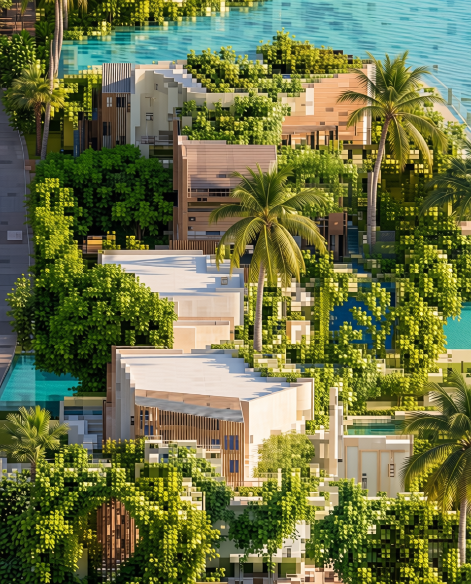 lot of light and reflects in the windows in the houses with a mediterranean style on either side lauriers roses lavandes et oliviers lot of sun some meditterranean pine trees on the background