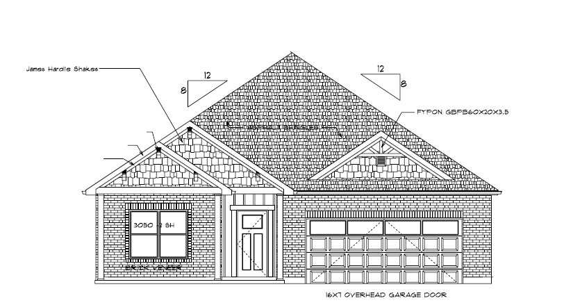 red brick with white trim and shake siding white garage door