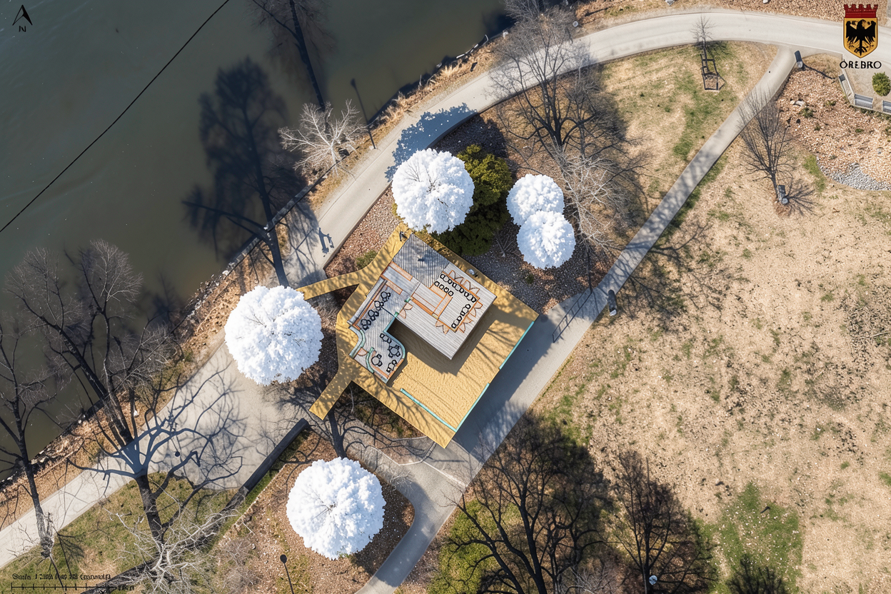 keep everything the same only replace the yellow area with a realistic sand gravel texture