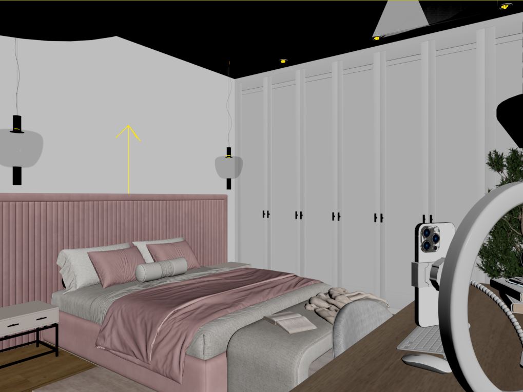 techo blanco luz de tarde cabecero en terciopelo sabanas cojines en algod n detras del cabecero hay iluminacion que va hacia arriba