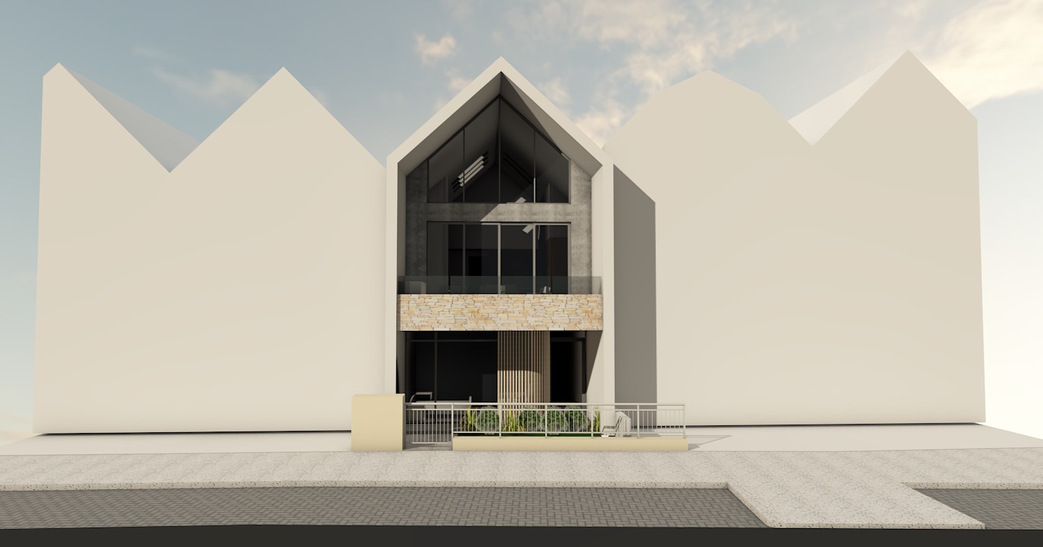 sunny afternoon wall lights to both side of 4 panel sliding door on second level sheer curtain only to 4 panel sliding door light cream venetian plaster to upper level walls inside balcony light pine colour to the vertical timber cladding on ground floor only