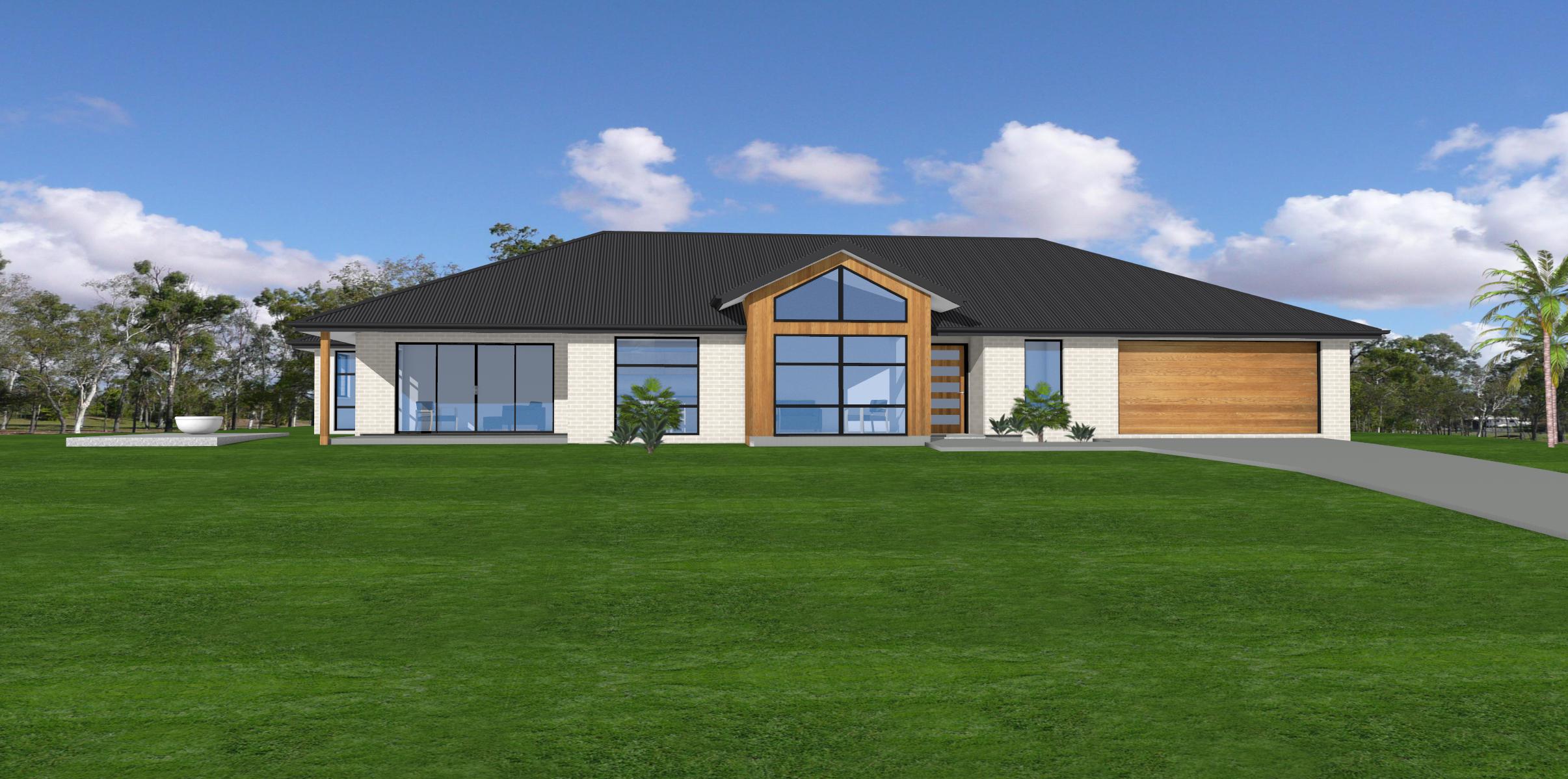 modern alpine style brick and timber walls colorbond steel roof reflective glass grass lawn to front with minimal landscaping