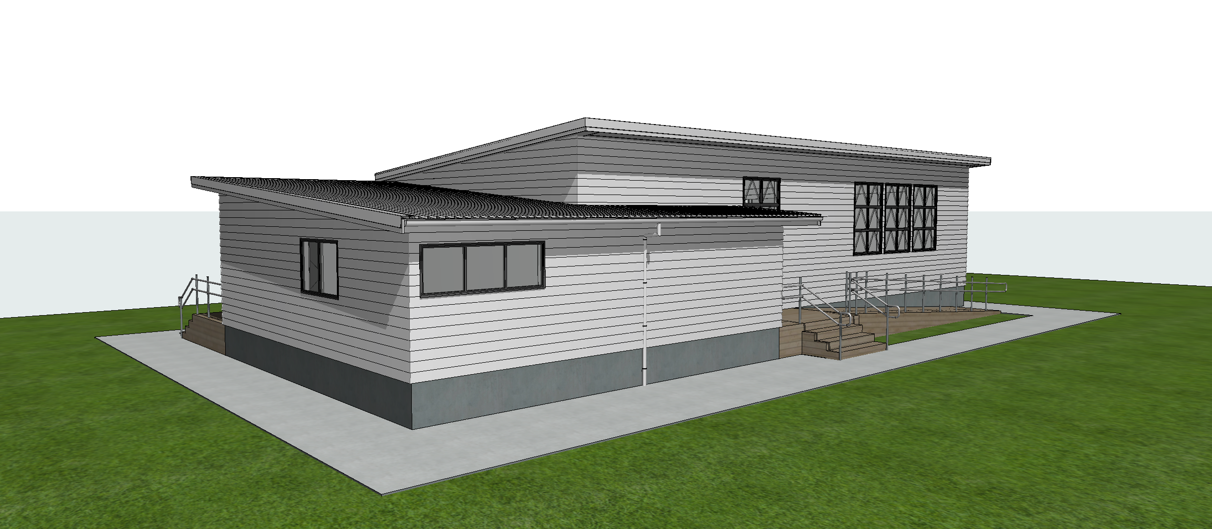 retain structure add flax and grass bush under ramp mid day lighting