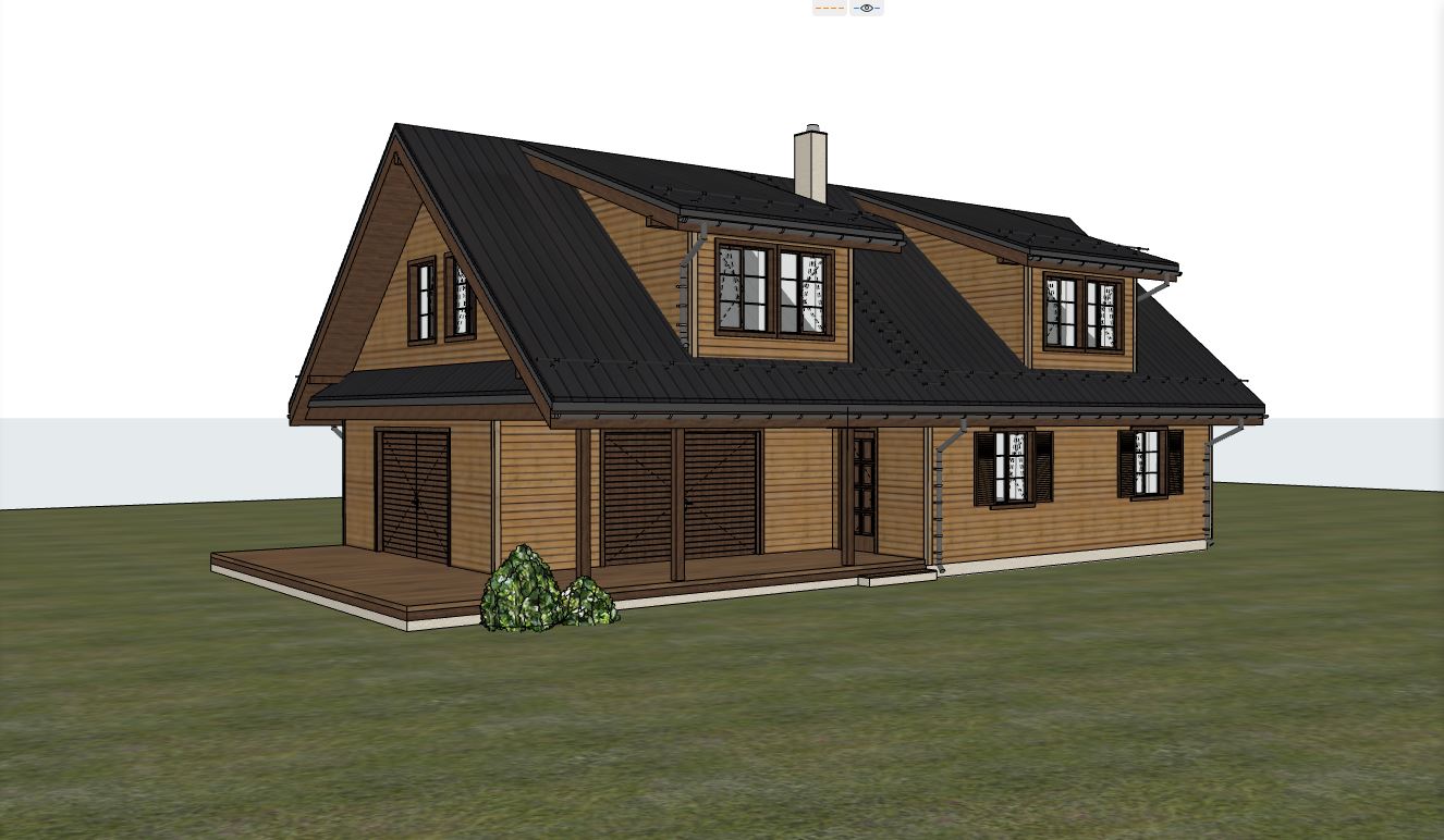 exterior decoration of the building fiber cement exterior siding wood imitation color cedral c18 plastic glazed with glass units with fragmentation window frames and shutters dark gray add shutter decoration roof tin blachotrapez shingle imitation