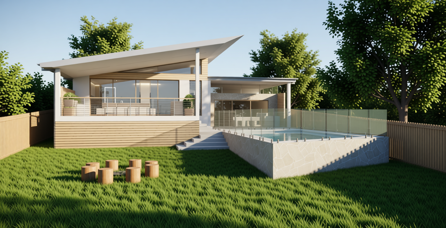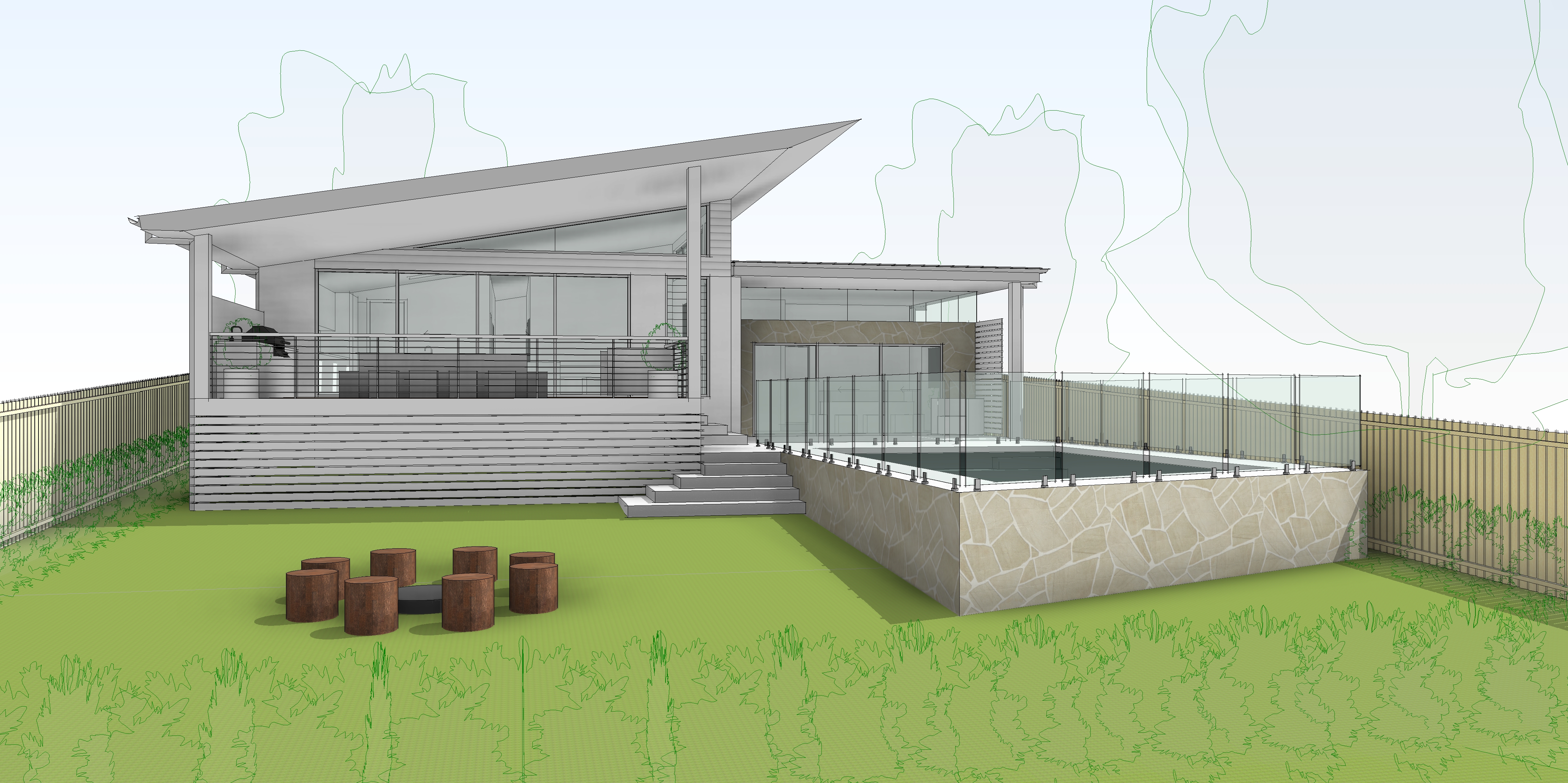 maintain colours and geometry add native landscaping