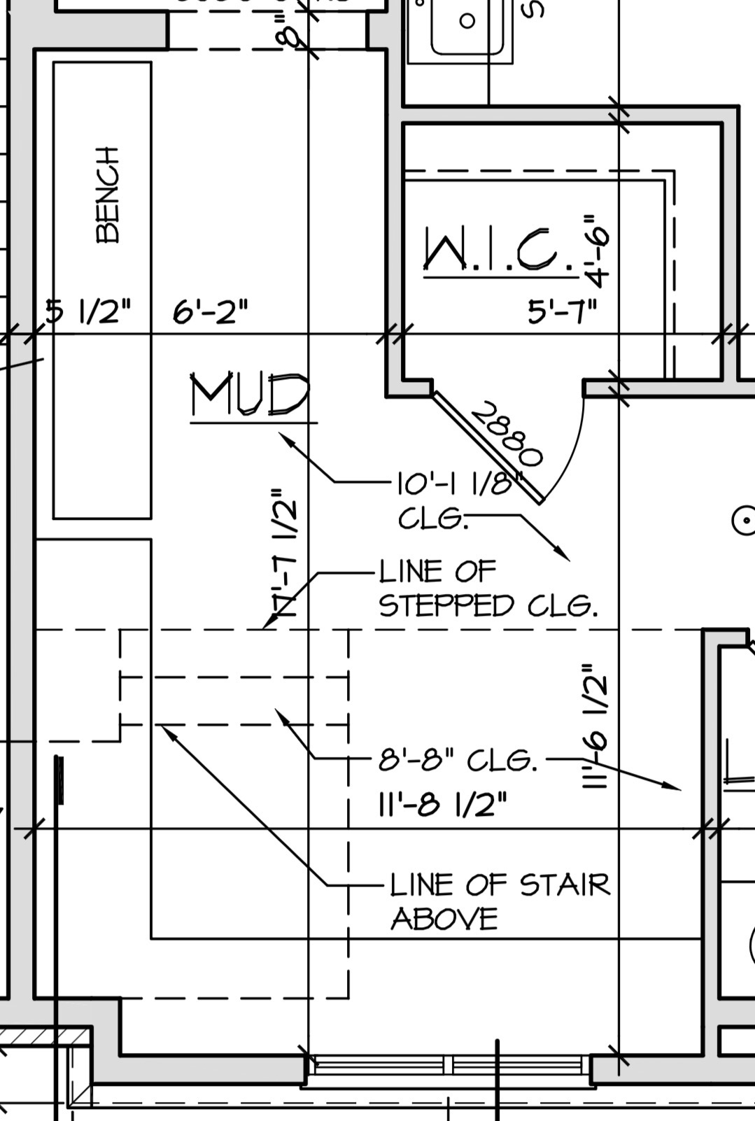 create a mudroom that has a desk under the window and floor to ceiling lockers along the 17 foot wall with a drop zone to put papers