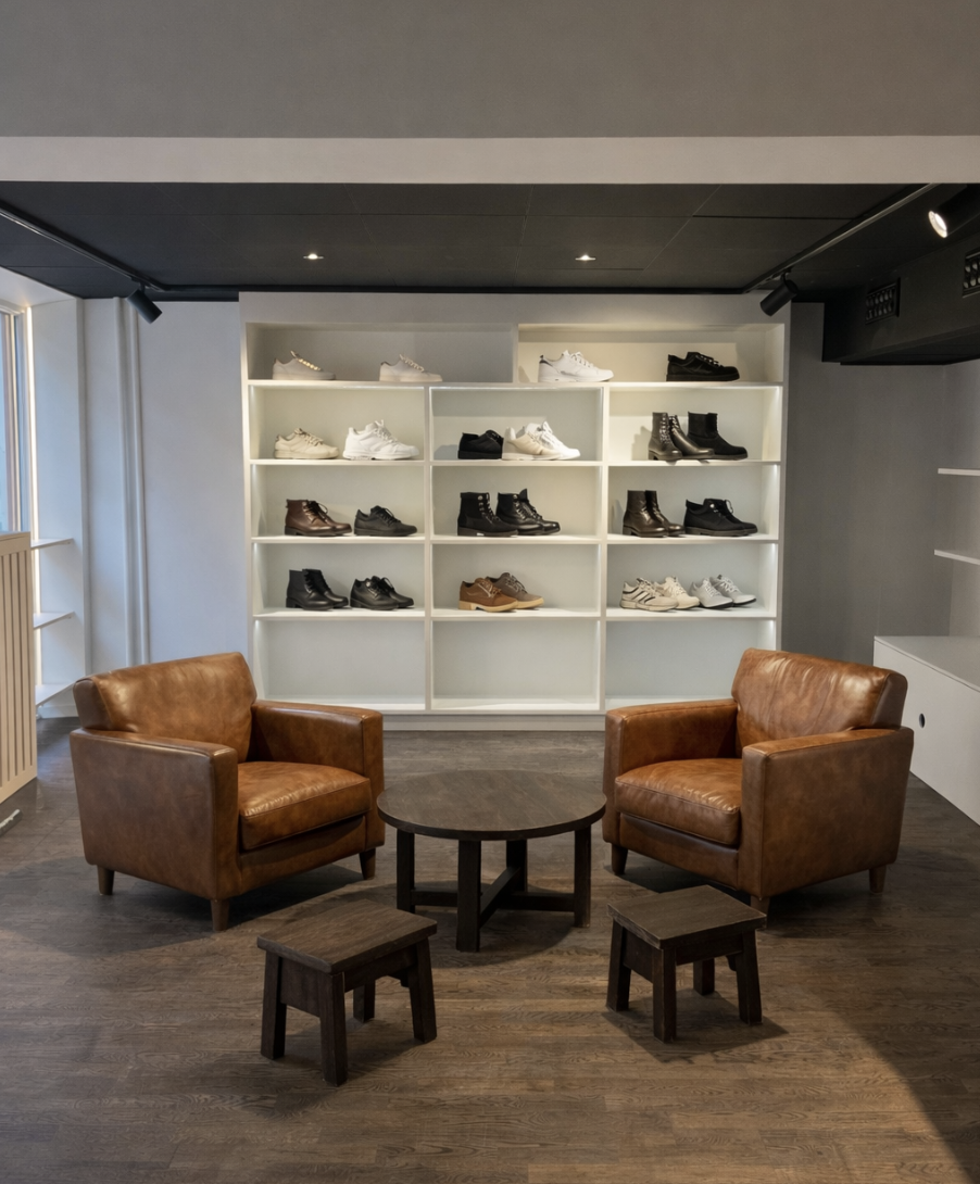 modernist exterior shot kan du g ra stolarna nnu mer nettare minre smidigare st ll endast en sko i varje hyll fack i vita hyllan st ll n got fint stileben p runda bordet i mitten architecture
