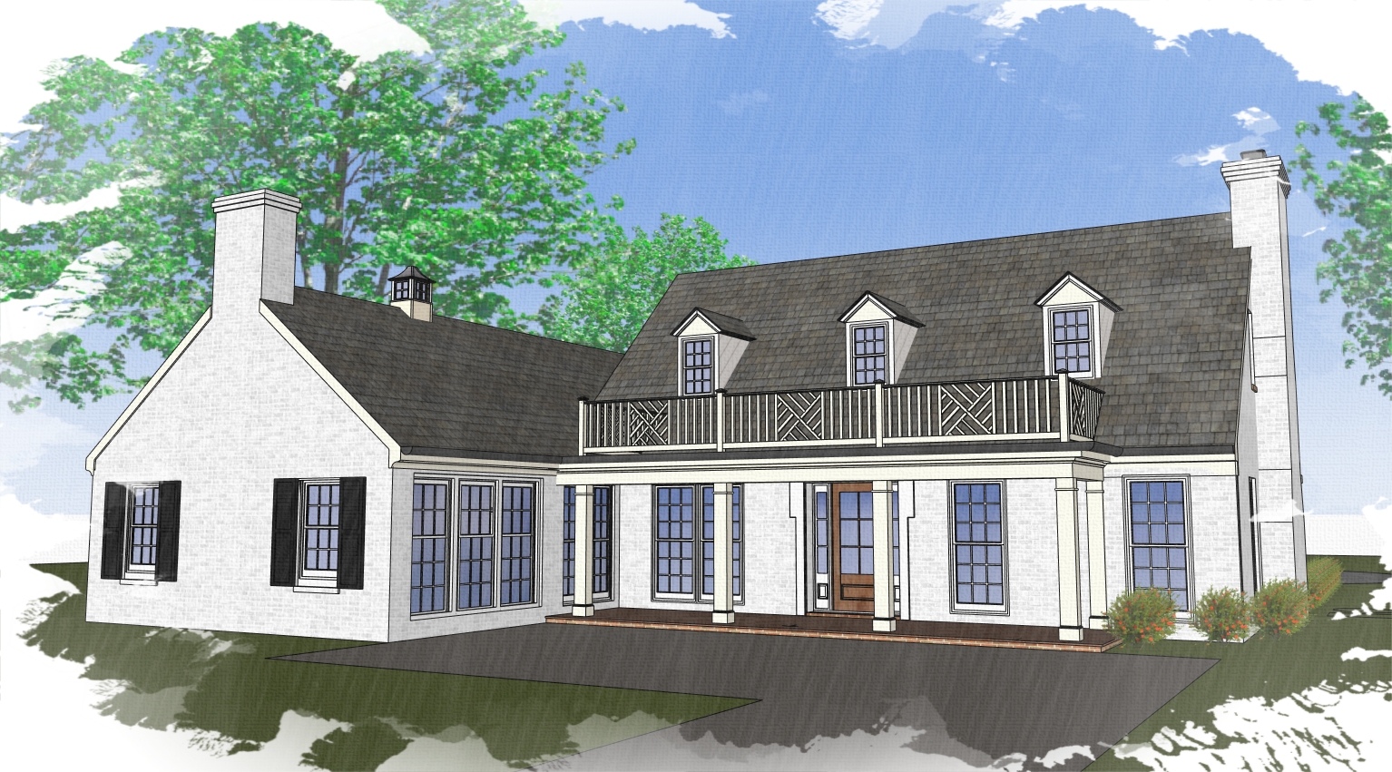 a charming classic two story house with a pristine white brick exterior highlighted by elegant black shutters the roof is adorned with brown wooden shingles enhancing its rustic charm the large windows are framed with a soft blue tint reflecting the vibrant blue sky above lush green foliage surrounds the house providing a serene natural atmosphere a beautifully landscaped garden with colorful flowers adds warmth and vibrancy the driveway is a smooth dark gray complementing the earthy tones of the surroundings the overall mood is peaceful and welcoming reminiscent of a soft sunset with a glow coming from house