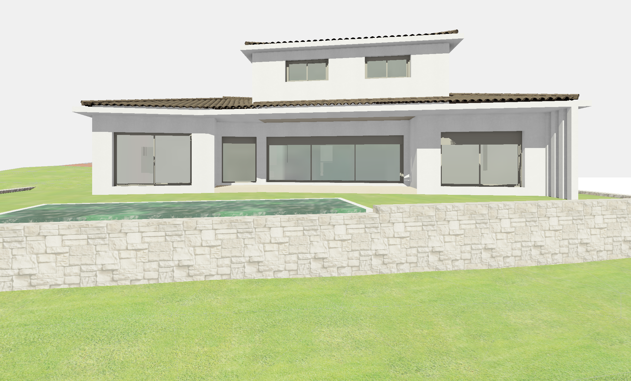 mediterranean landscape in the backgound lot of light and reflects in the windows add some mediterranean pine trees and olive trees more sun on the facade piscine en verre a debordement