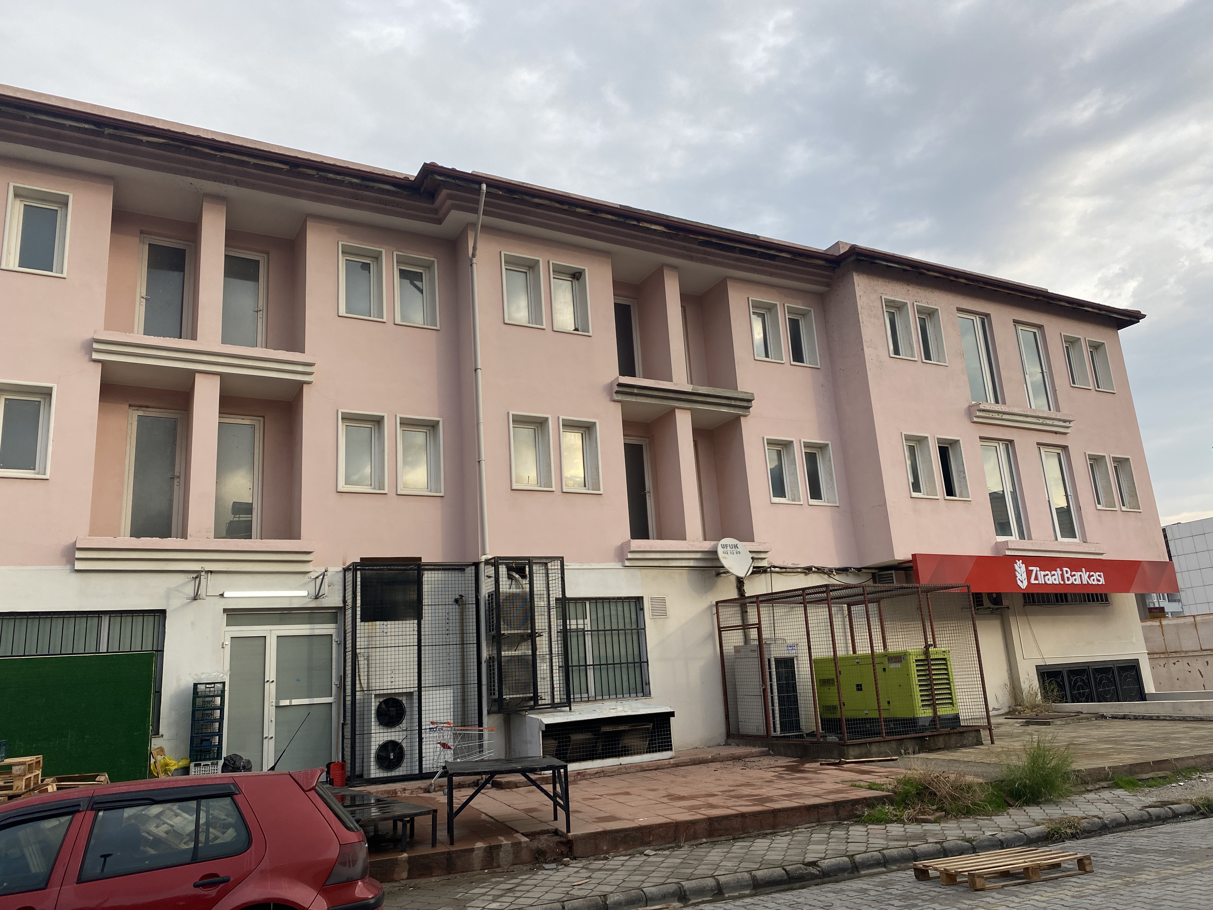 reimagine the facade in a dark industrial modern style using exposed concrete matte black metal panels and corten steel accents add vertical and horizontal sunbreakers recessed led lighting strips and clean window detailing use corten for window framing or parapet elements to create contrast remove visual clutter like cables and signs to achieve a refined industrial aesthetic architecture