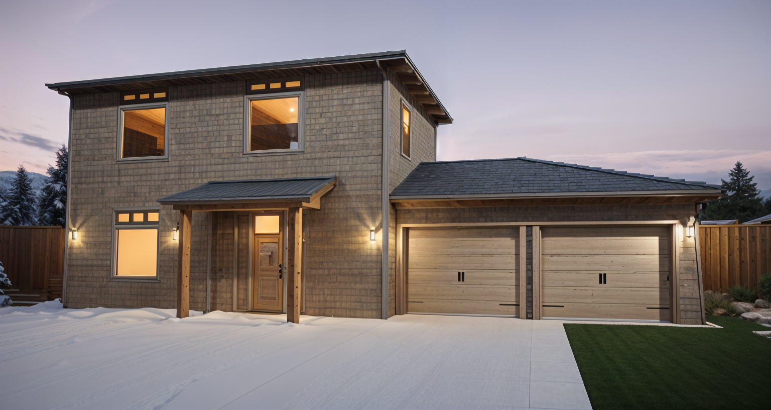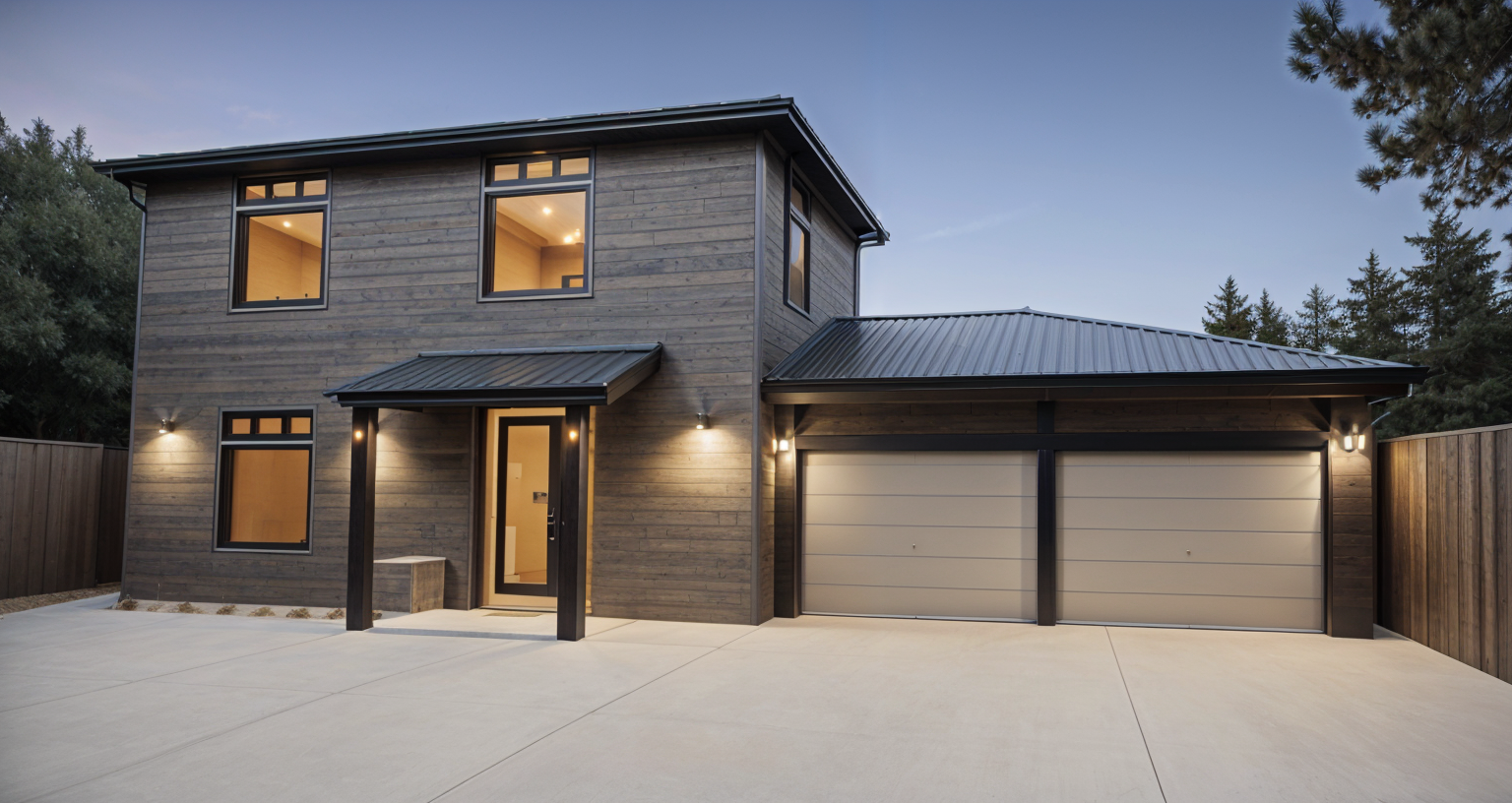 convert to a farmhouse style with vertical board and batten walls and cedar wood window trims with california native landscape and trees architecture