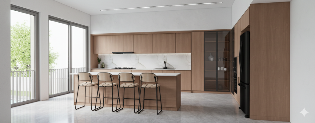 don t improvise adding elements keep the existing cabinet design and color as it is just make it smoother and realistic