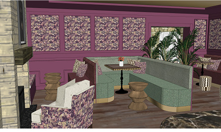 make this sketchup render more realistic interior shot of the hotel sitting room cosy lo lights layered with textiles realistic textures