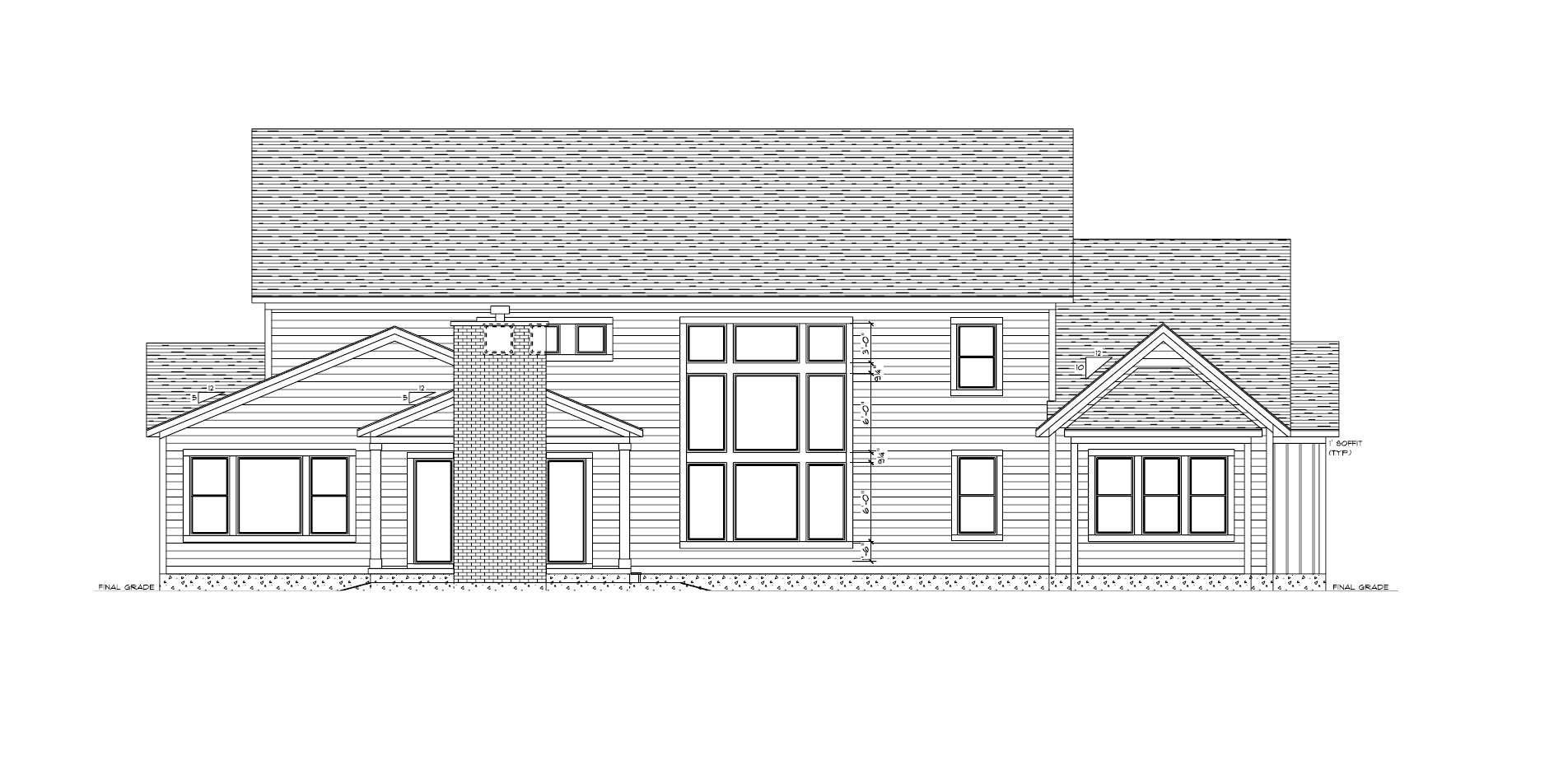 make as photorealistic as possible while keeping textures the same as selection professional landscaping in a lightly wooded scene with good lighting match materials to plan and remove any text white siding black trim black windows black porch post