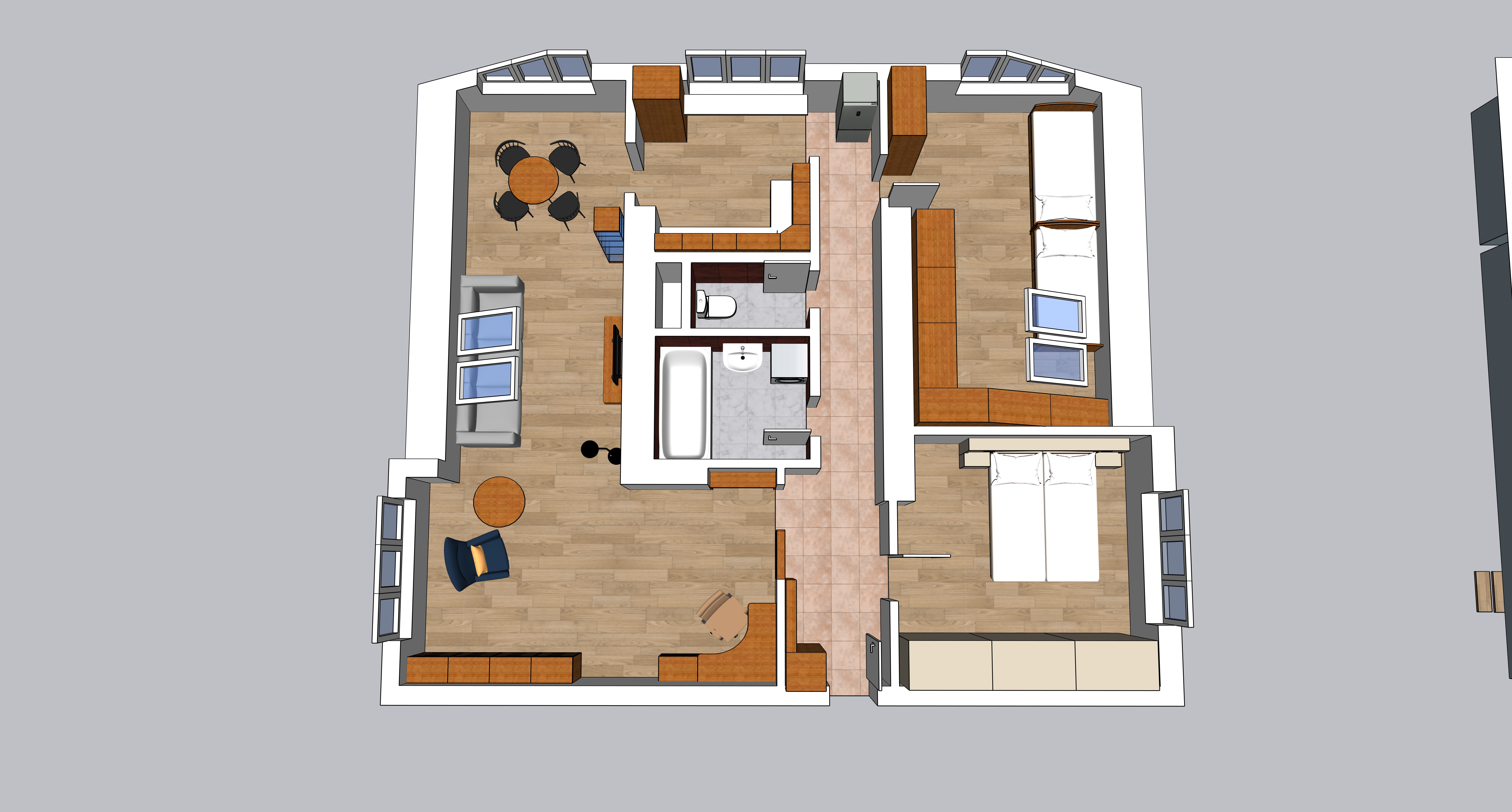 vykresli p dorys ze sketchupu v pln realistick m vyobrazen nastav sv tlo tak a je v e patrn m kk st ny osv tlen p ev n shora jakoby denn m sv tlem dbej aby n bytek barevn nespl val s podlahou sklo v oknech vykresli jako namodral c lem je top real estate prezentation