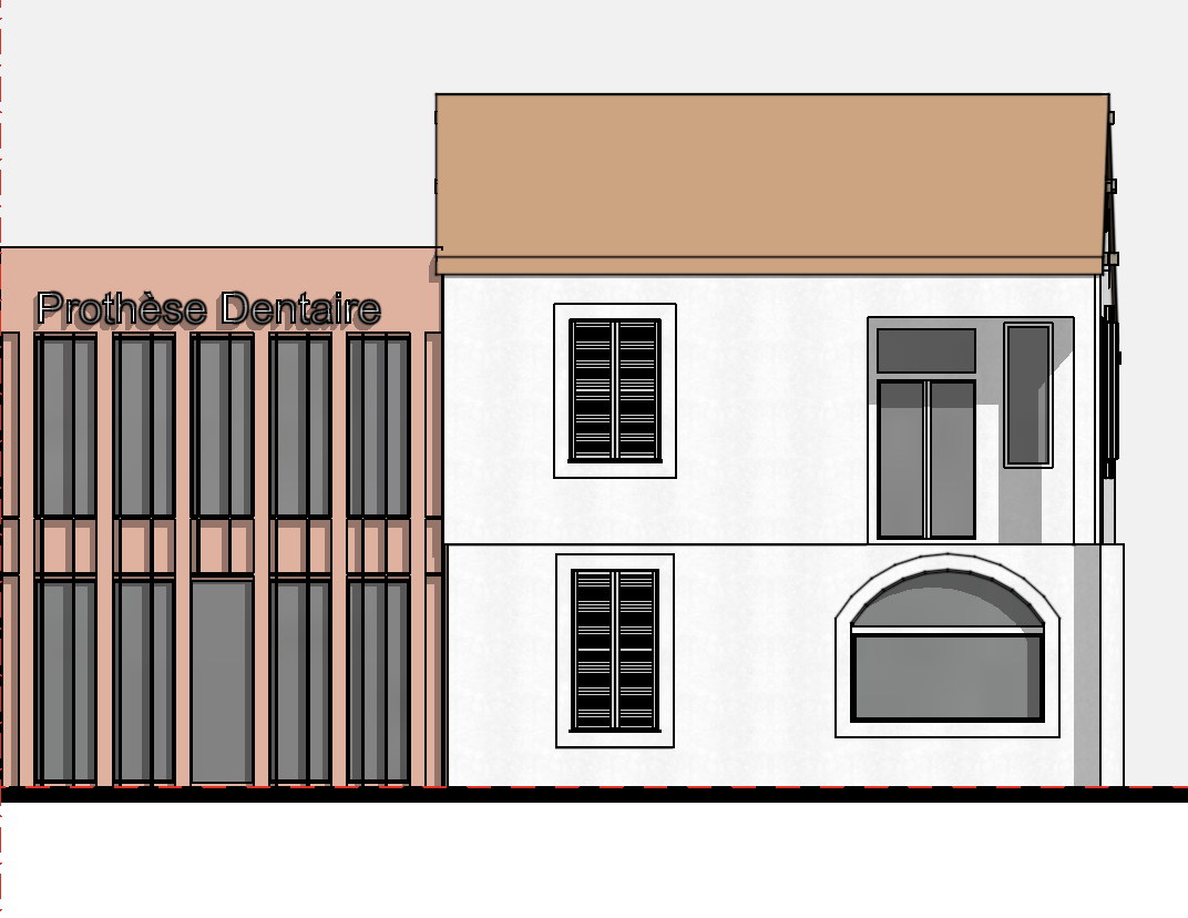 the extension is tiles colored and the house is white with a tiles roof