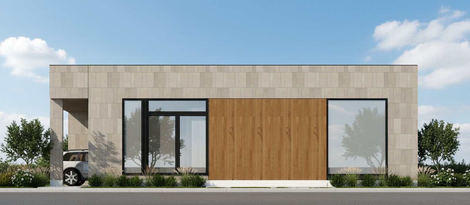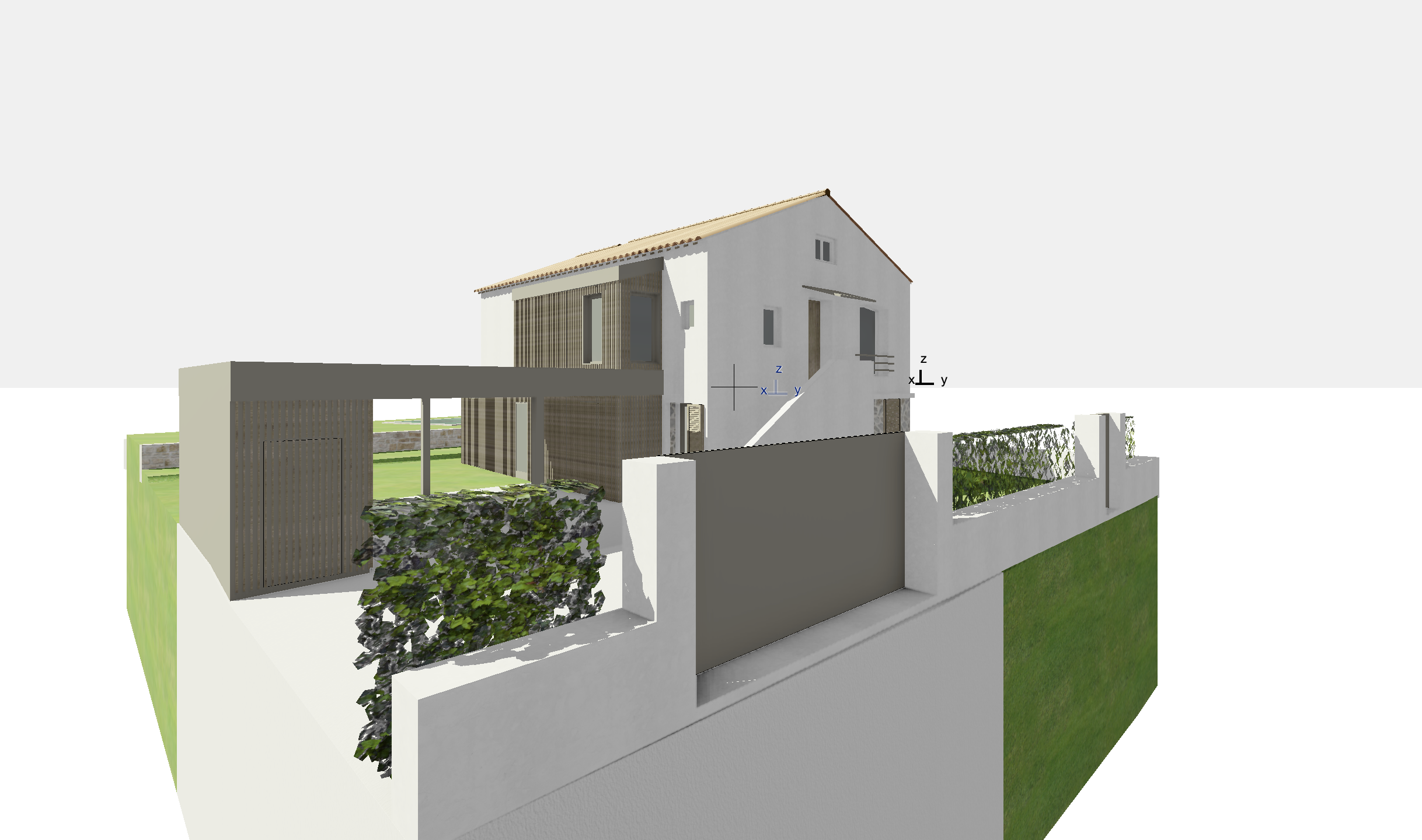 light and reflects in windows trees and villas in the backgroung the construction on the foreground is for cars