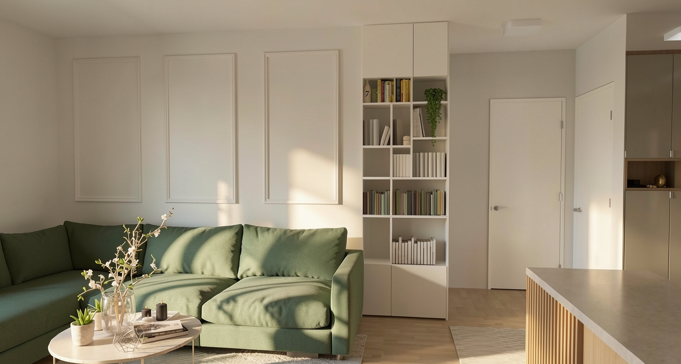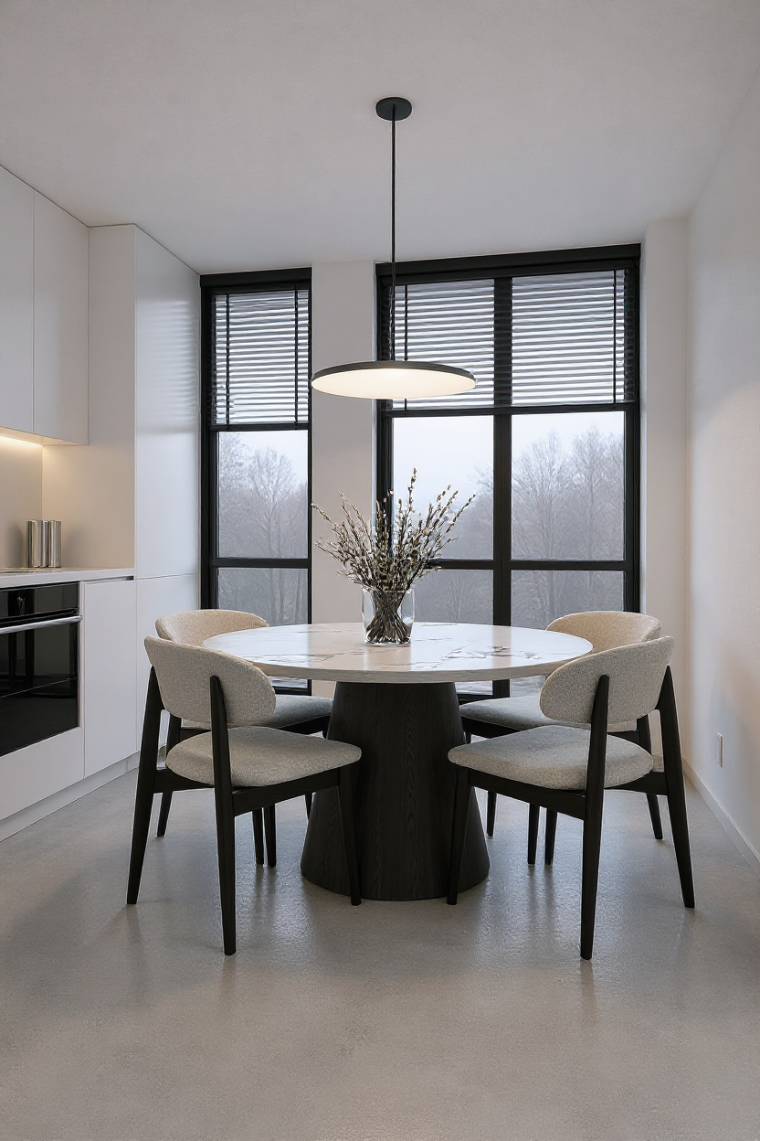a serene garden plot with a small tree in the center its leaves a rich vibrant green surrounding the tree are clusters of lavender flowers in shades of purple and lilac interspersed with delicate white blooms the hedges are lush and rounded a deep emerald green the atmosphere is peaceful and tranquil with a soft morning light casting gentle shadows on the slate grey ground the overall color palette consists of greens purples whites and greys creating a harmonious and calming scene