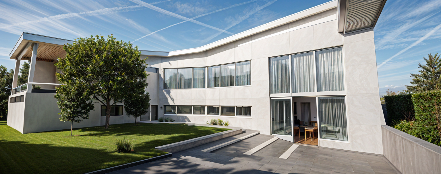 modern exterior shot autumn blue sky light cloud air plane architecture