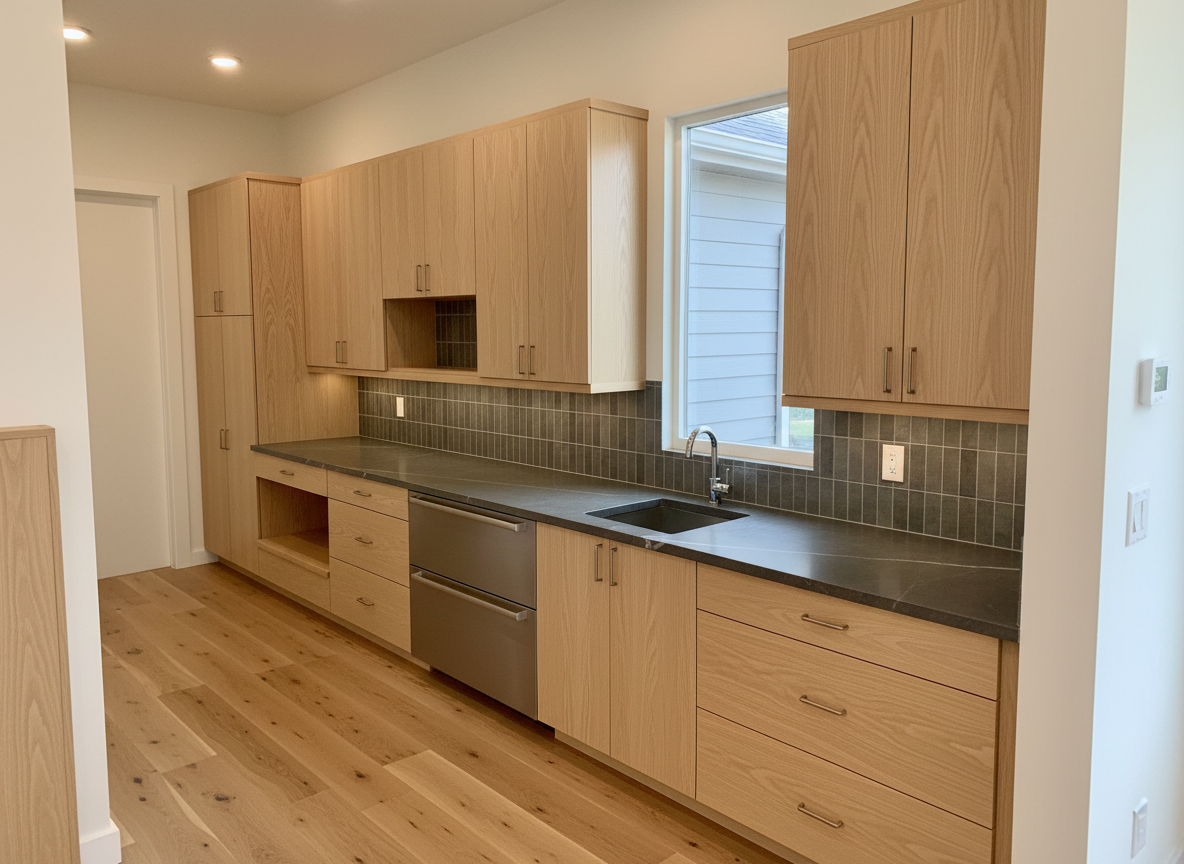 rift white oak cabinets natural stain soapstone countertops backsplash 2x6 see reference interiors doors and door casing to be warm medium wood