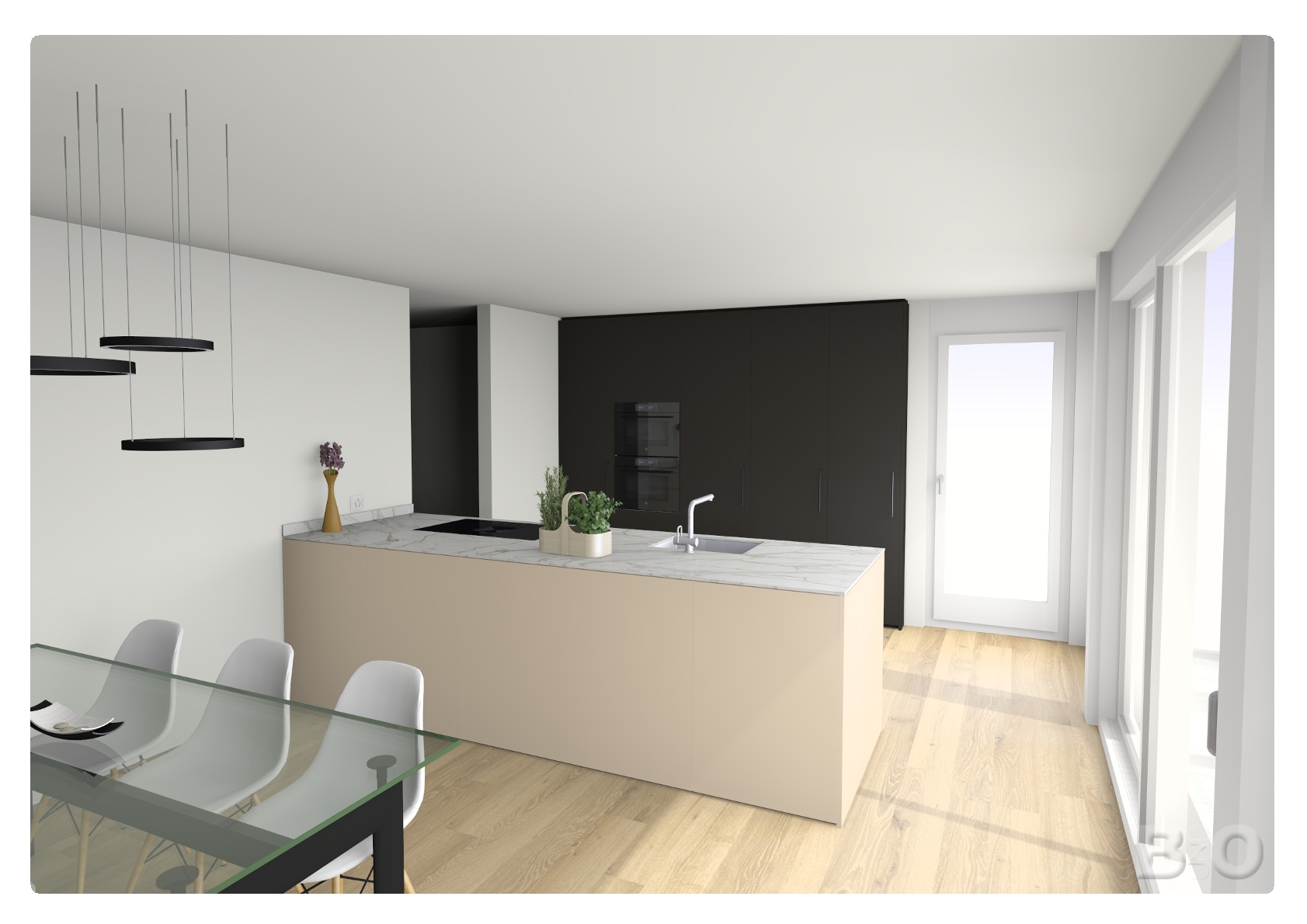 hochschrankfront im gleichen ton wie die k cheninsel beige