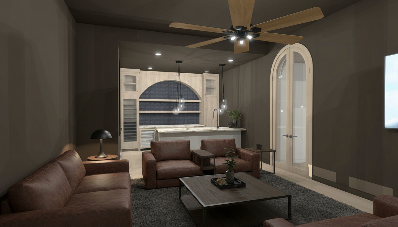 this is the backyard add an in ground pool outdoor kitchen put contemporary reclining chairs by the pool put bathing deck with reclining chairs in the shallow end of the pool put an elevated hot tub at the other end of the pool see 2nd rendering make the yard a lot bigger this house will sit on several acres of cleared and manicured land white or very lightly off white exterior metal roof black framed windows these are in most new builds let s make the plants tress a little more tropical with palm trees palmetto pindo mexican fan palm european fan palm windmill palm crepe myrtles those are the trees in front of the house it s nice to use live oaks which are very symbolic of the south in the usa water oaks as well southern pine trees loblolly pine ground foliage